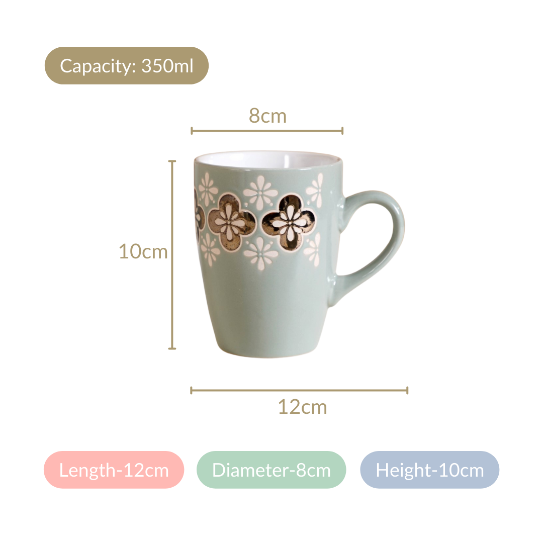 These mugs are ideal for gifting, whether for special occasions or as a thoughtful gesture to friends and loved ones. The silk screen printed floral pattern adds a touch of elegance and uniqueness to each mug, making them visually appealing and special.