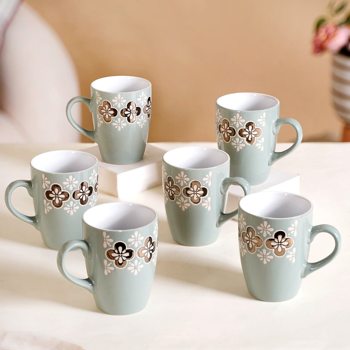 Our floral patterned coffee mug set of 6 adds a touch of sophistication and elegance to your mornings. The serene blue colour and floral pattern elevate your coffee ritual, making each sip a delightful experience. Moreover, these mugs are made of 100% food-grade ceramic material, which is toxin-free and lead-free, keeping your drinks healthy.