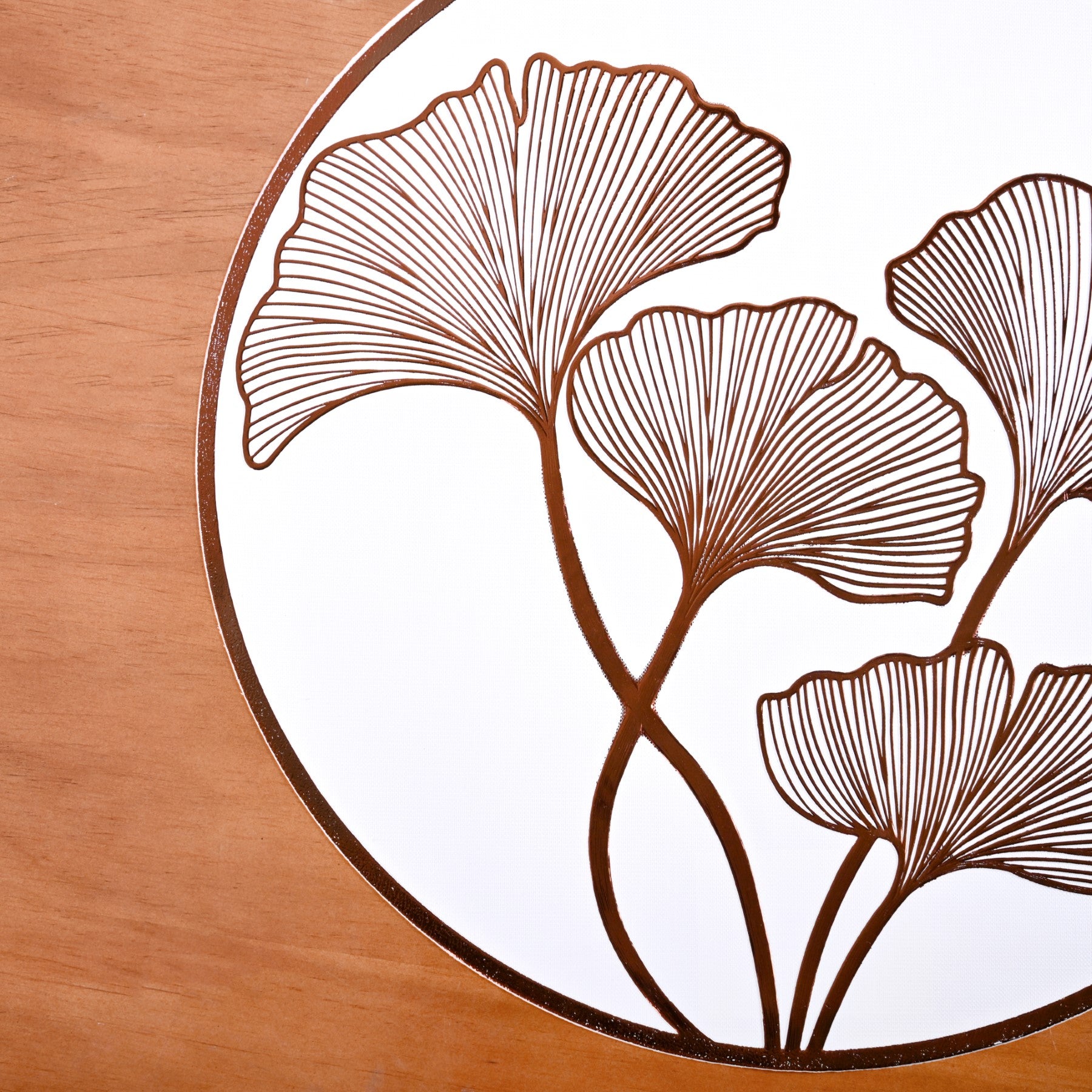 The ginkgo leaf is a symbol of longevity and resilience, and the intricate bronze detailing adds a sophisticated, nature-inspired charm to any dining setting.