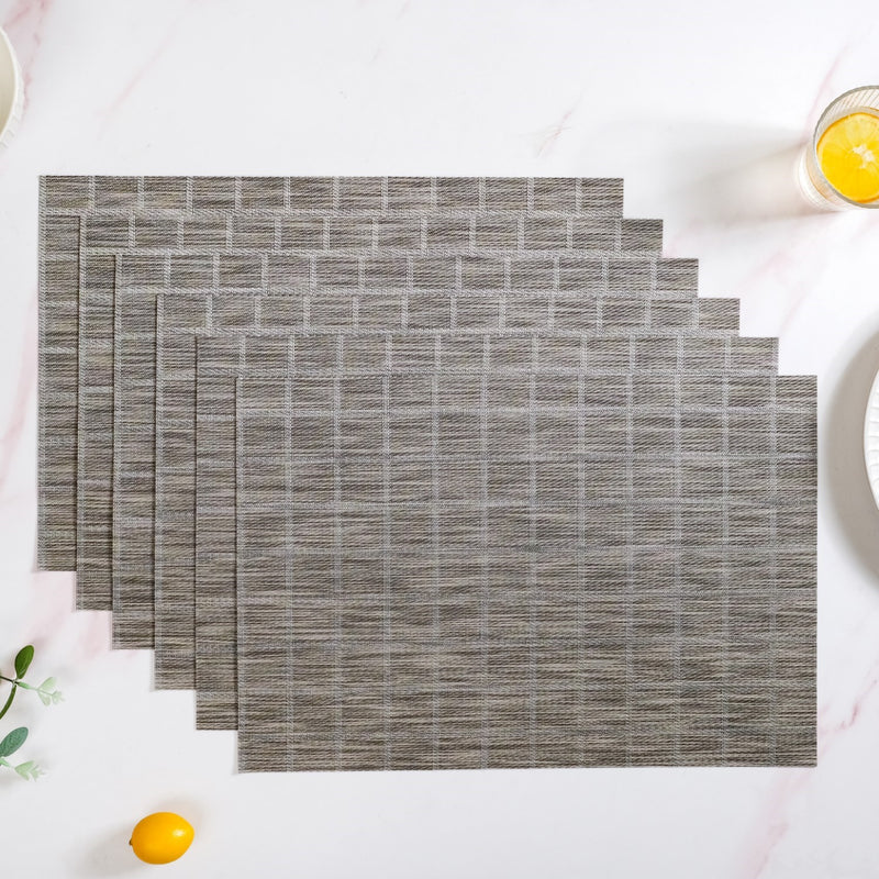 Design: This set of 6 rectangular table mats is made from sturdy PVC and designed with a classic checkered pattern in a warm palette of beige, brown, taupe, and cream. The novelty checks bring a timeless touch to any dining setup, pairing well with both wooden and modern tabletops. The textured surface helps grip your plates and cutlery, preventing them from slipping. Each placemat has a fine finish with clean-cut edges, offering a balanced mix of function and form. These dining table placemats are lightweight, flexible, and simple to store when not in use.