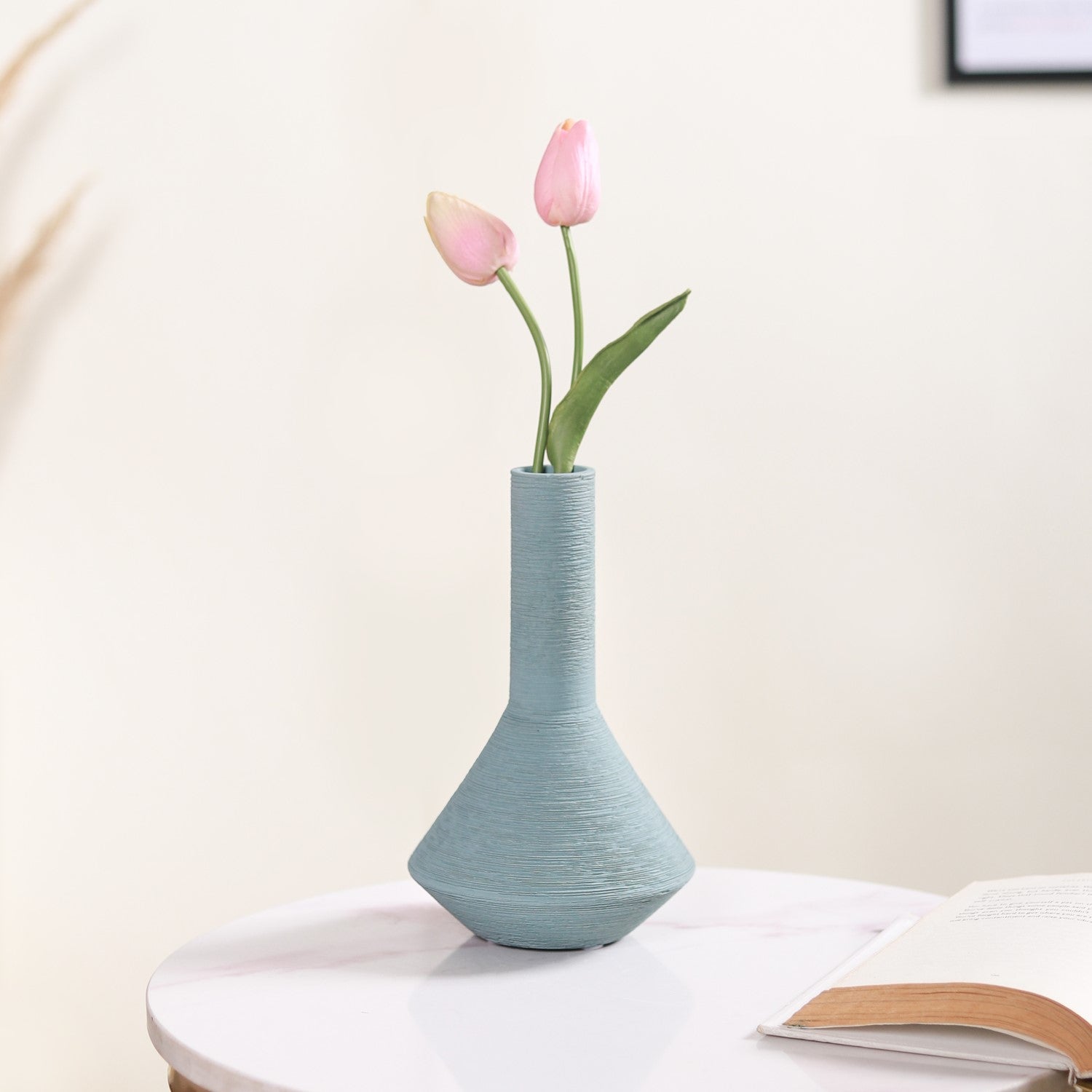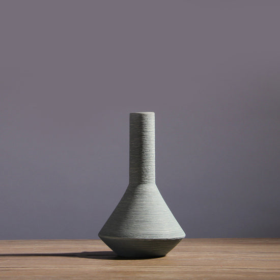 Transform your living space with our meticulously crafted ceramic flower vase. With its brushed texture and matte finish, it radiates an elegant Scandinavian style. The conical flask-shaped design not only adds visual charm but also provides stability, thanks to anti-skid foam pads on the base. Maintaining this ceramic vase is a breeze, making it an ideal backdrop for vibrant floral arrangements. Elevate your home decor with this versatile centrepiece, where artistry and design combine to elevate your interior aesthetics.