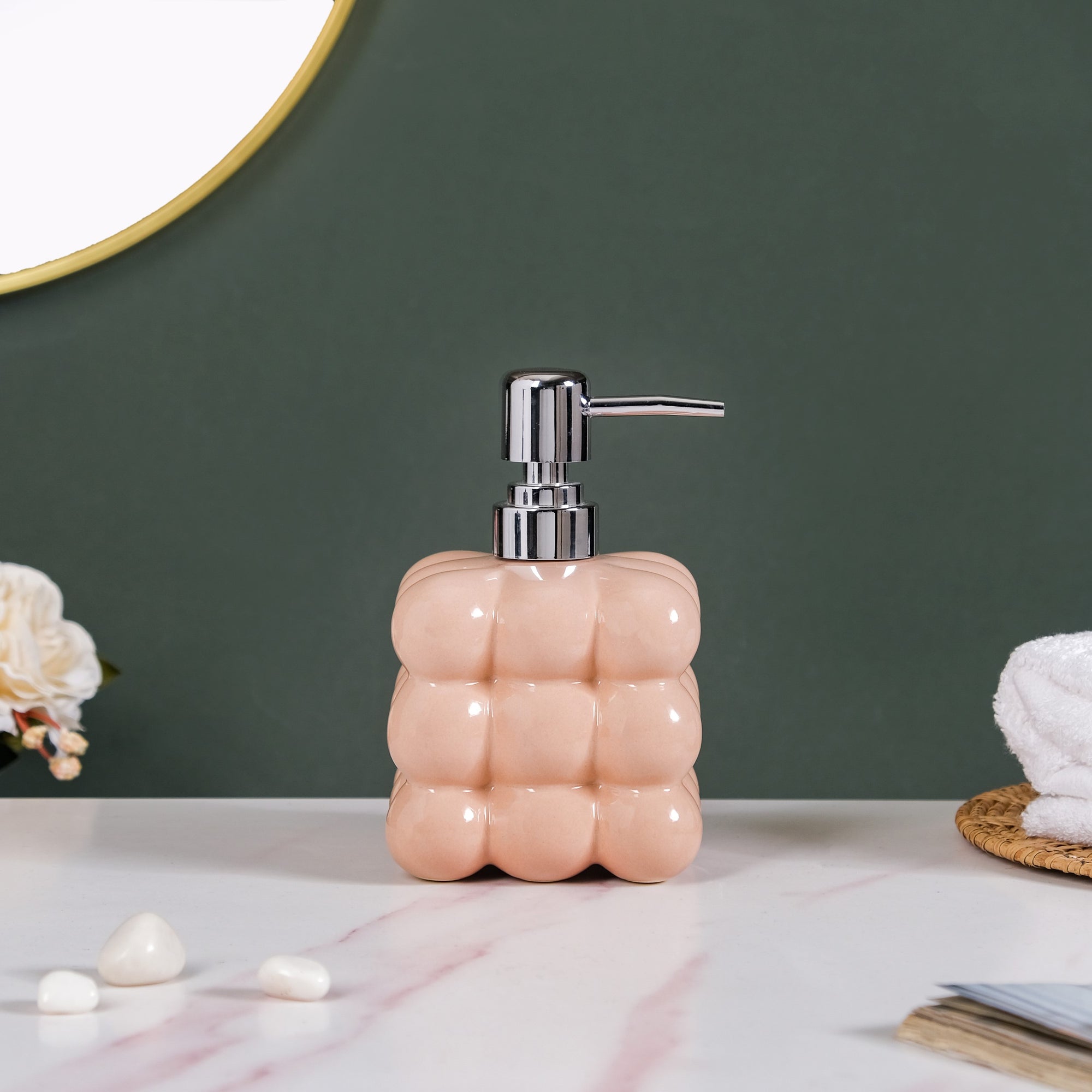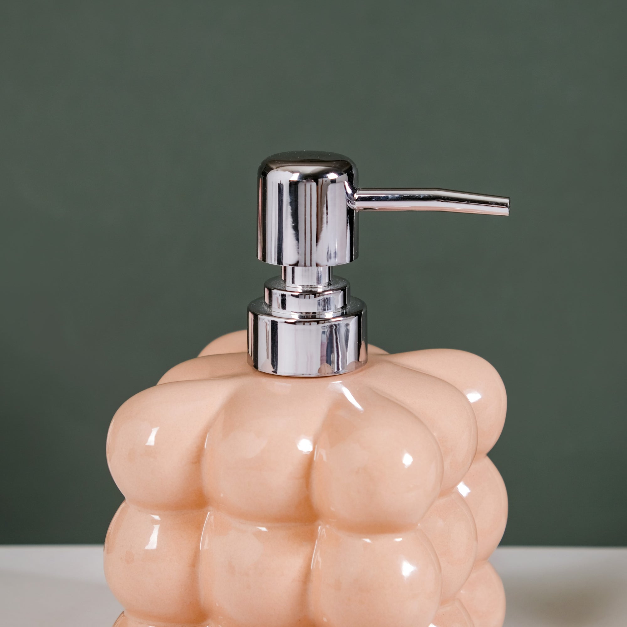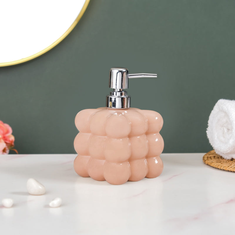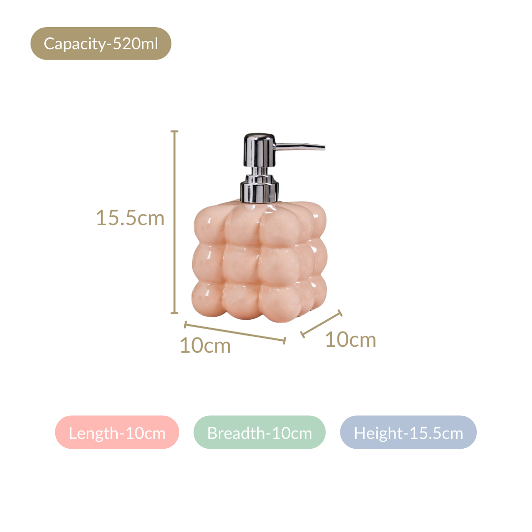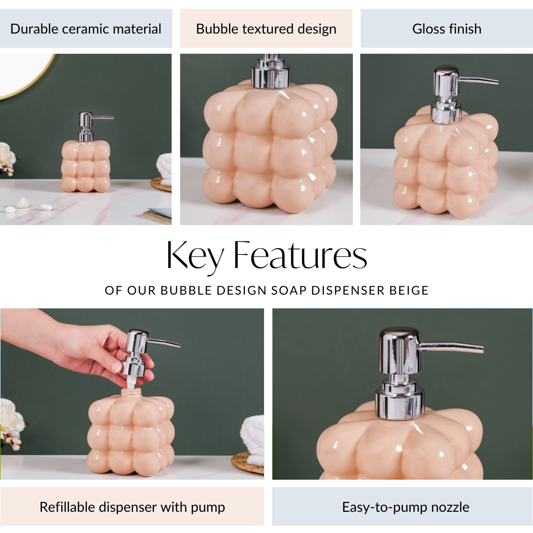 The liquid dispenser has a bubble-textured design and a gloss finish look.
