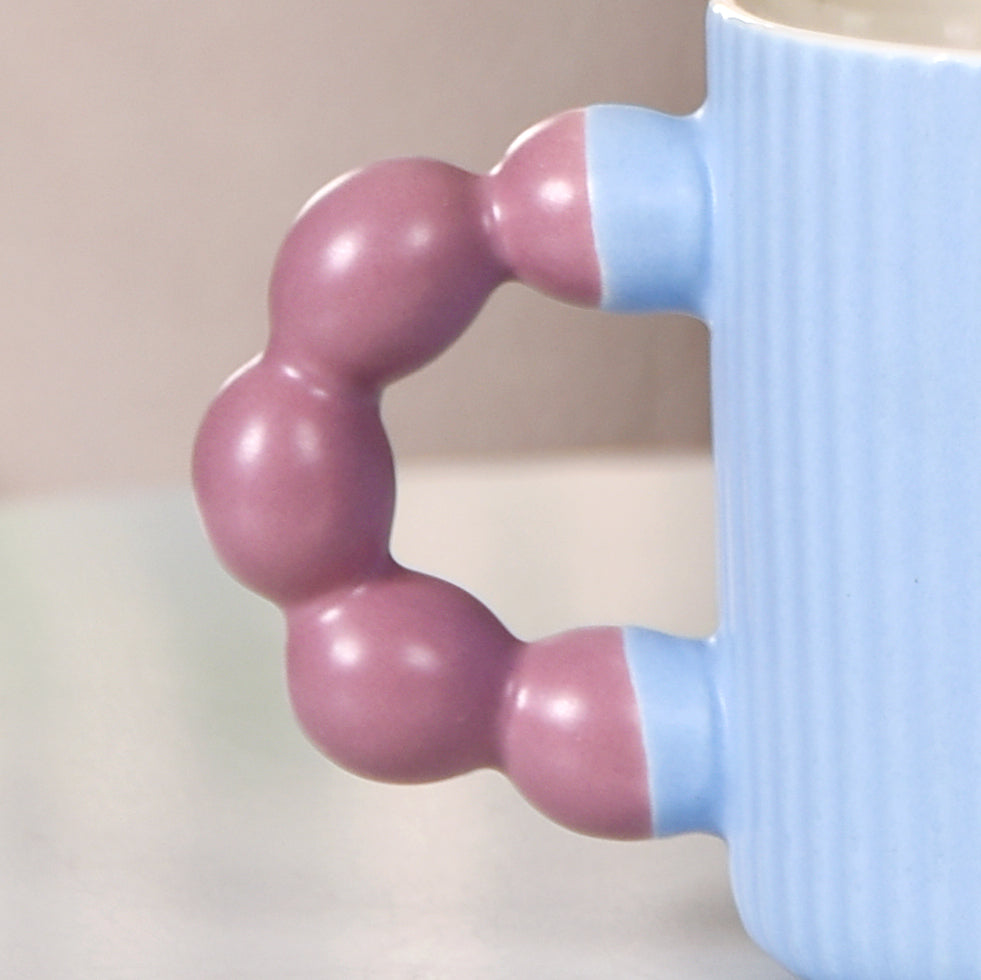 Design: These ceramic coffee mugs are all about merging style with comfort. The set features two playfully vibrant colour combinations that just pop off the table. The beaded design on the handle not only adds an artistic flair but also provides a more comfortable and secure grip. Furthermore, the stackable design helps you save space without sacrificing style, making them a great fit for any kitchen setup.