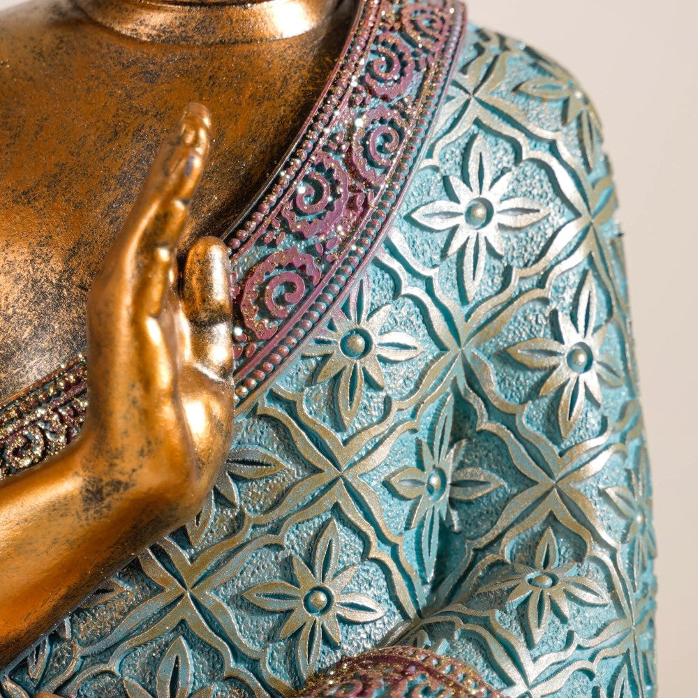 Our Sitting Buddha Statue is expertly crafted by skilled artisans who pay meticulous attention to detail. It is designed to exude elegance and opulence, and its gold finish adds a touch of luxury to your home decor. This craftsmanship makes it a unique and standout centrepiece for your living space.