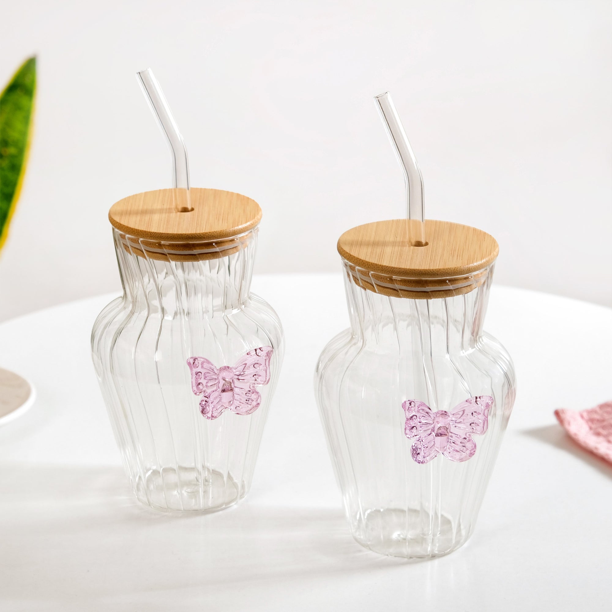 Butterfly Bloom Borosilicate Tumbler With Straw Set Of 2 500ml