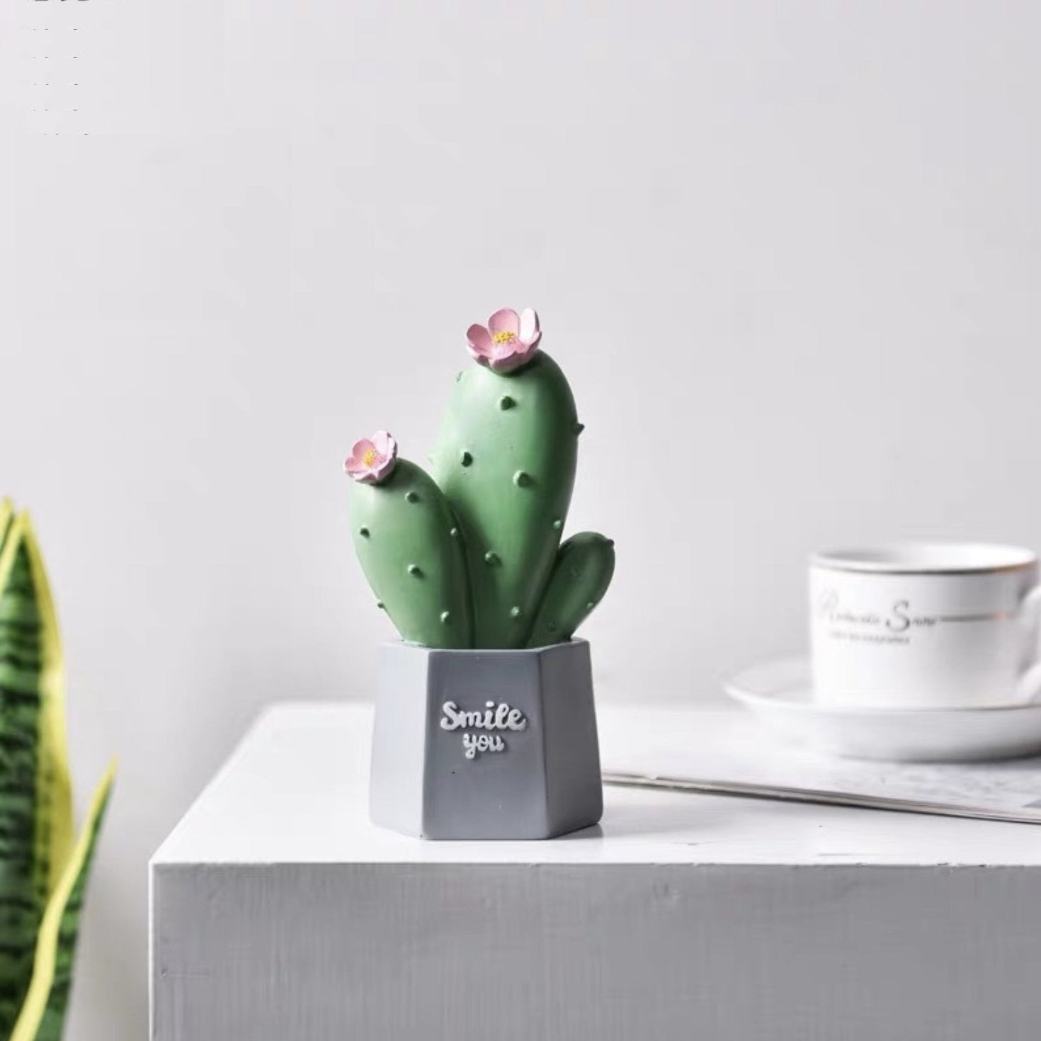 This unique green cactus display adds fun to nooks and shelves and can help to decorate a space.
