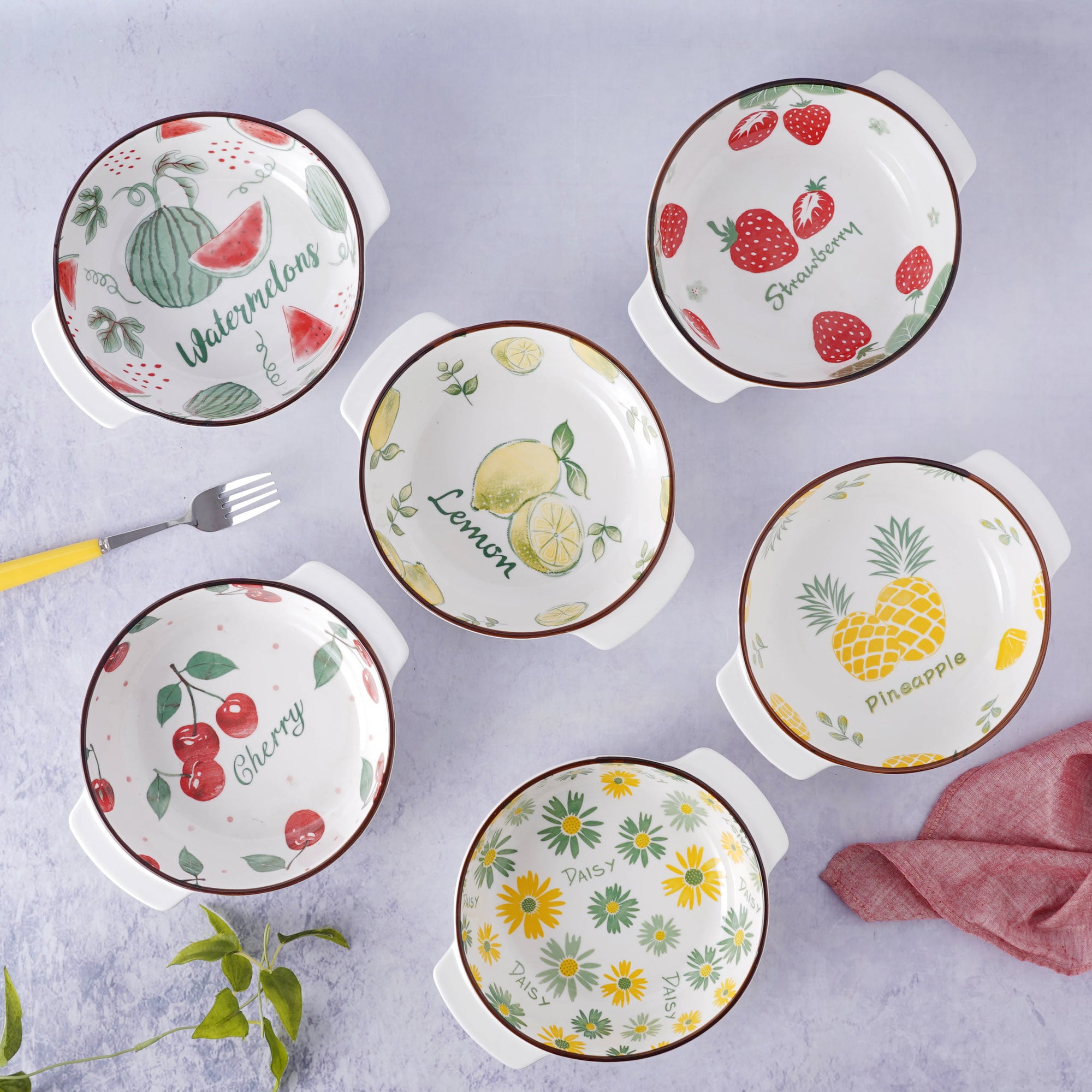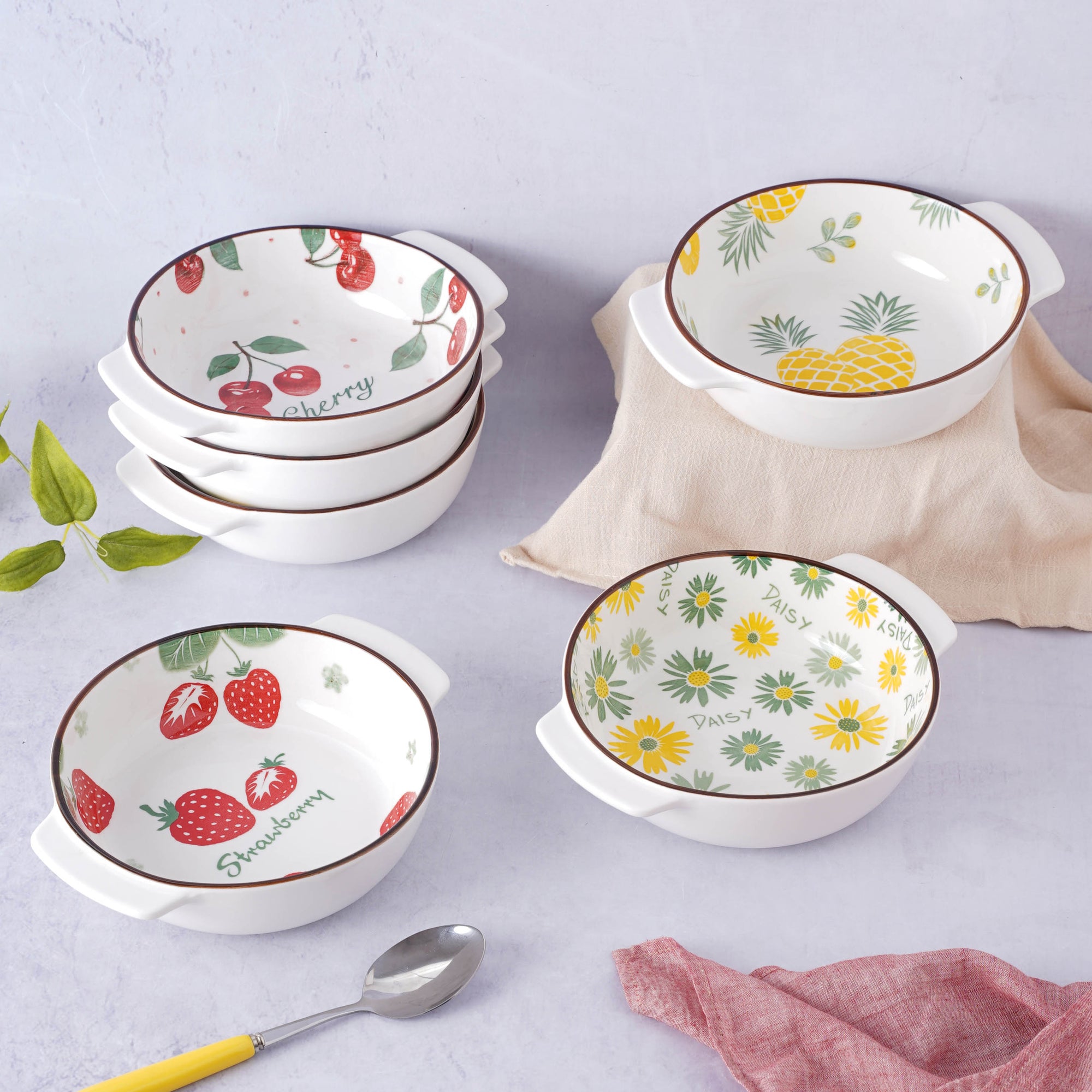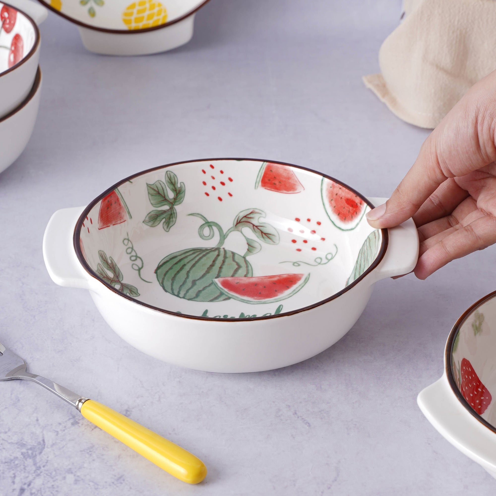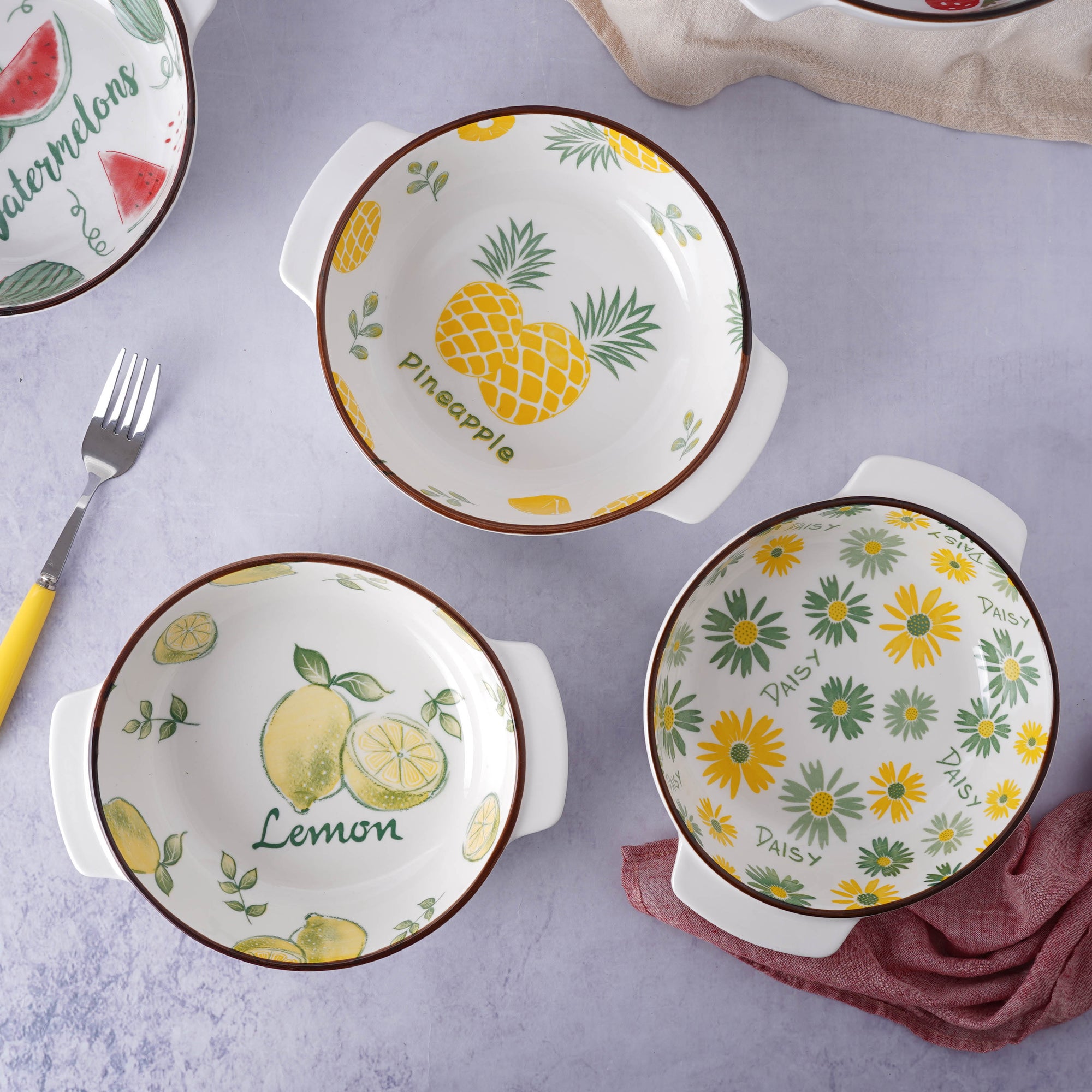 Cake pans made in ceramic with a white exterior and colourful patterns on the inside. The baking pans are available in different styles, each with a unique pattern. One can bake chocolate cakes, fudge, vegetables, chicken, and more. Both sides of the ceramic baking pans have handles, making them convenient to hold and serve. The colorful bakeware can be used to add appeal and colour to a dining table and are also oven, microwave and dishwasher friendly. The microwave safe bowls can be used to serve breakfast or heat food as well. Create a cake pan set with the cake pans for oven and gift it to the baker friend or family member.