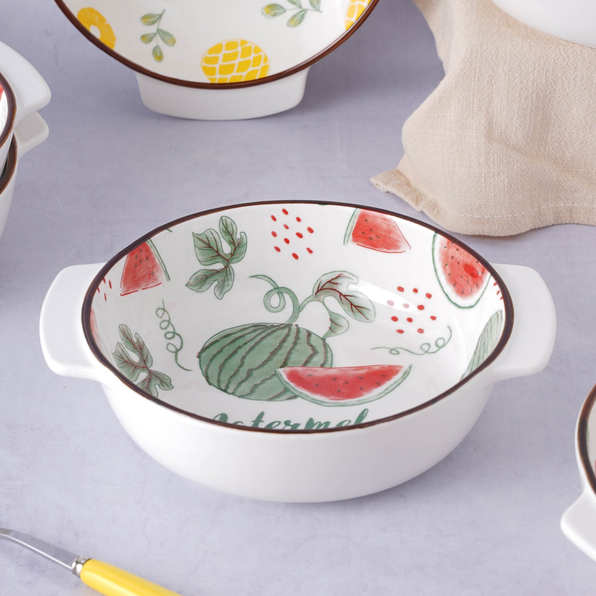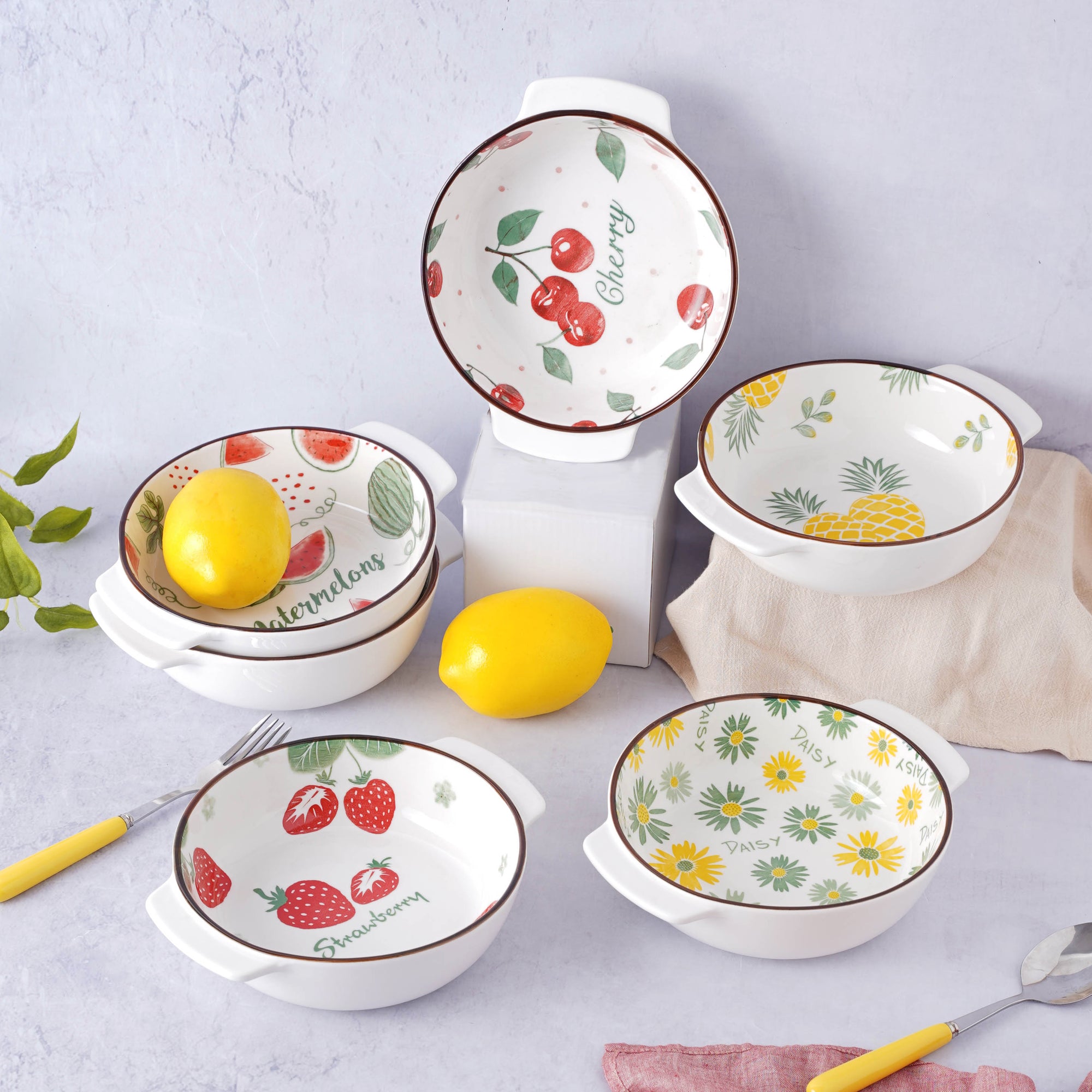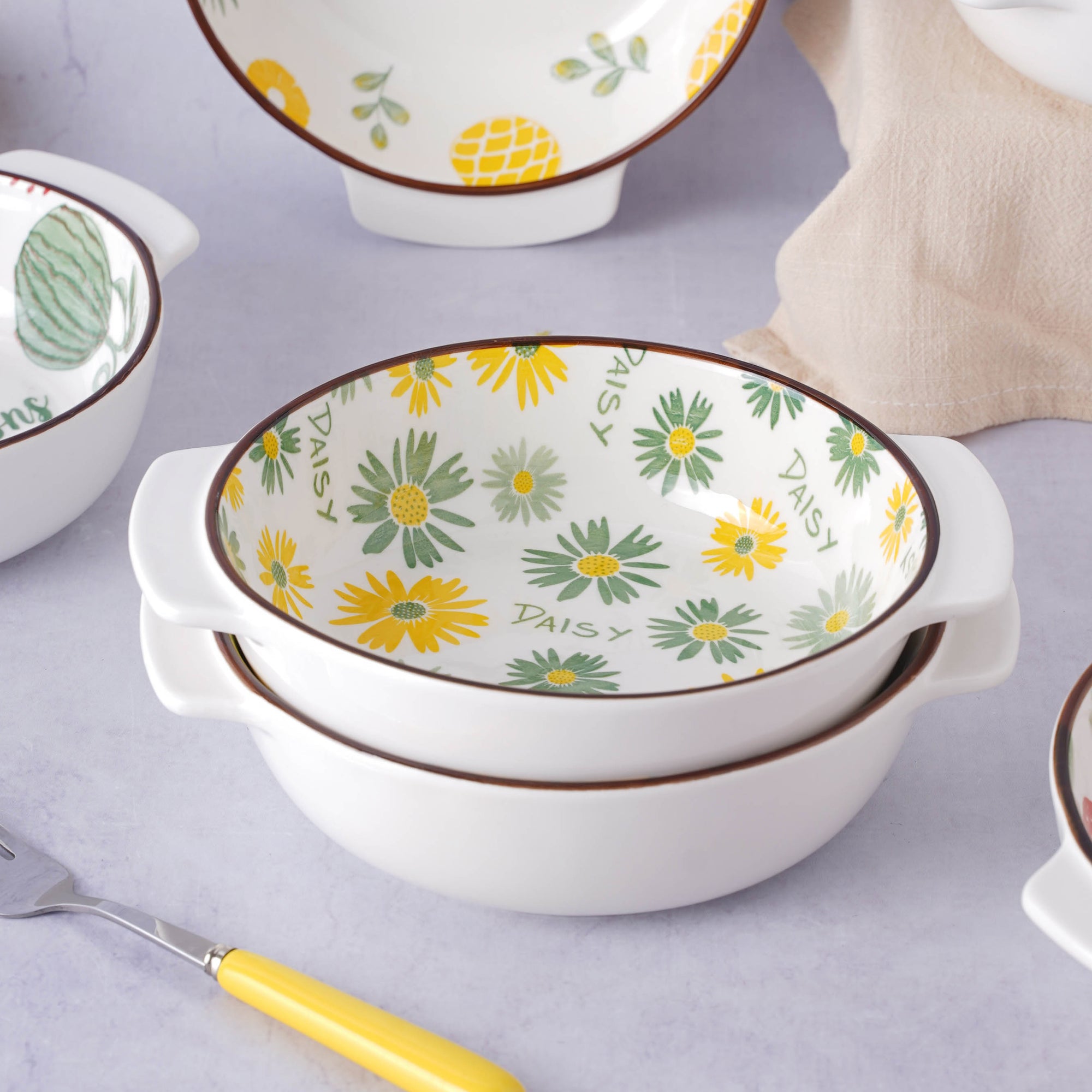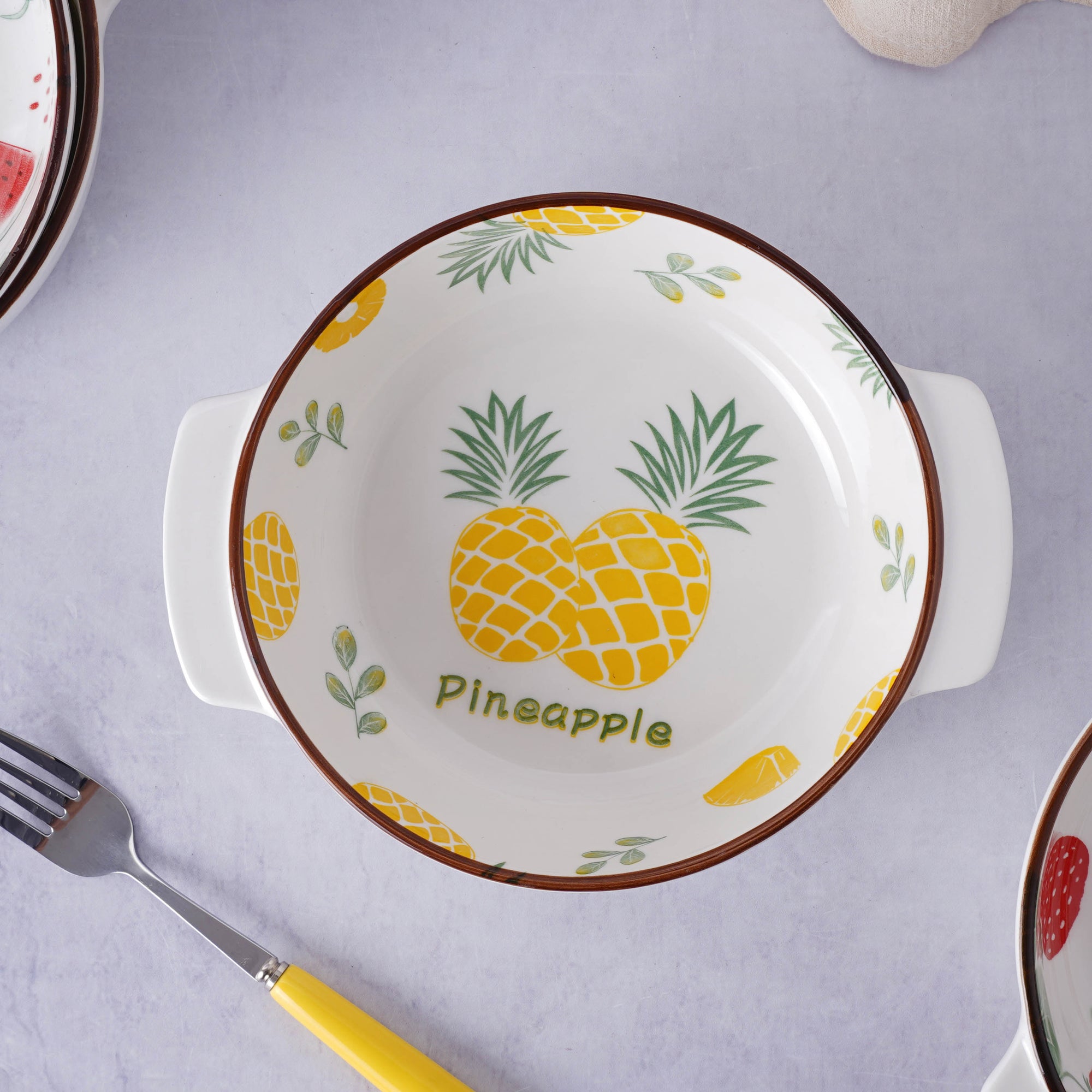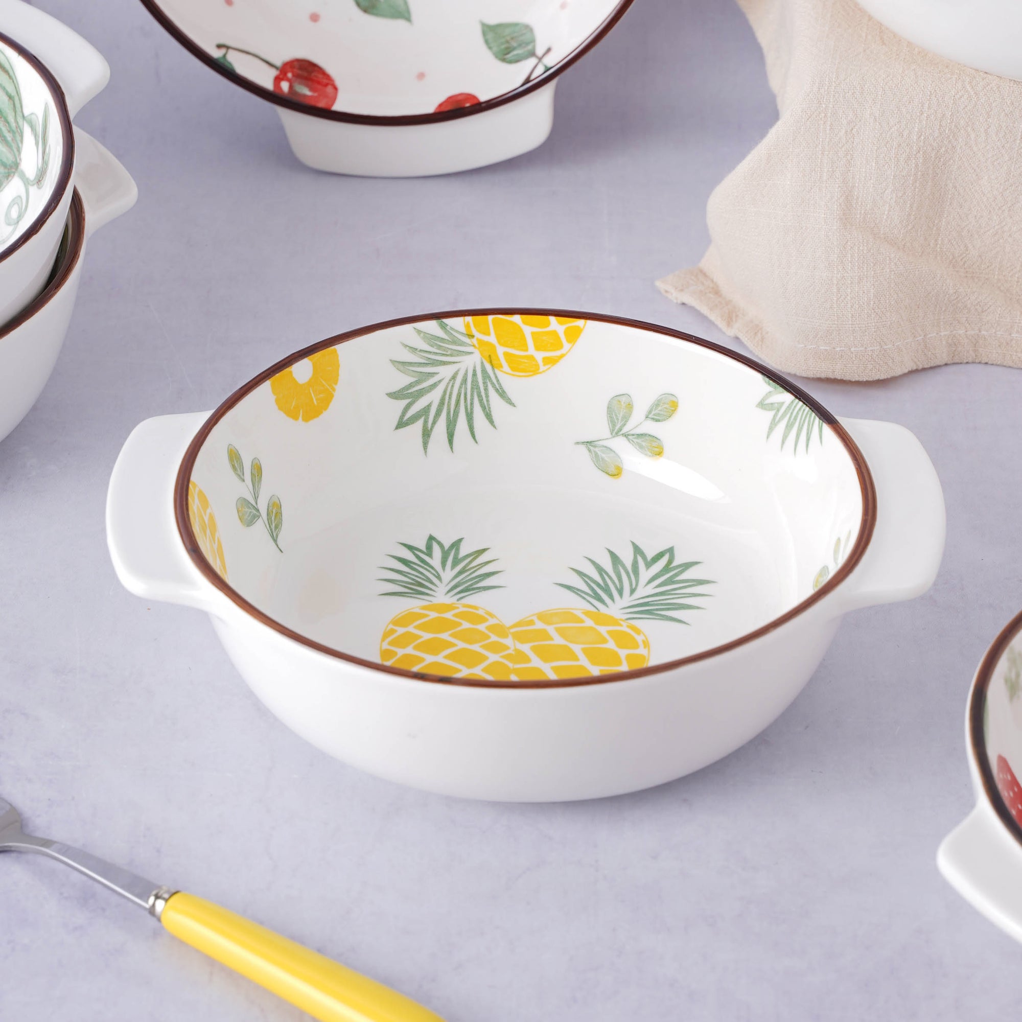 Cake pans made in ceramic with a white exterior and colourful patterns on the inside. The baking pans are available in different styles, each with a unique pattern. One can bake chocolate cakes, fudge, vegetables, chicken, and more. Both sides of the ceramic baking pans have handles, making them convenient to hold and serve. The colorful bakeware can be used to add appeal and colour to a dining table and are also oven, microwave and dishwasher friendly. The microwave safe bowls can be used to serve breakfast or heat food as well. Create a cake pan set with the cake pans for oven and gift it to the baker friend or family member.