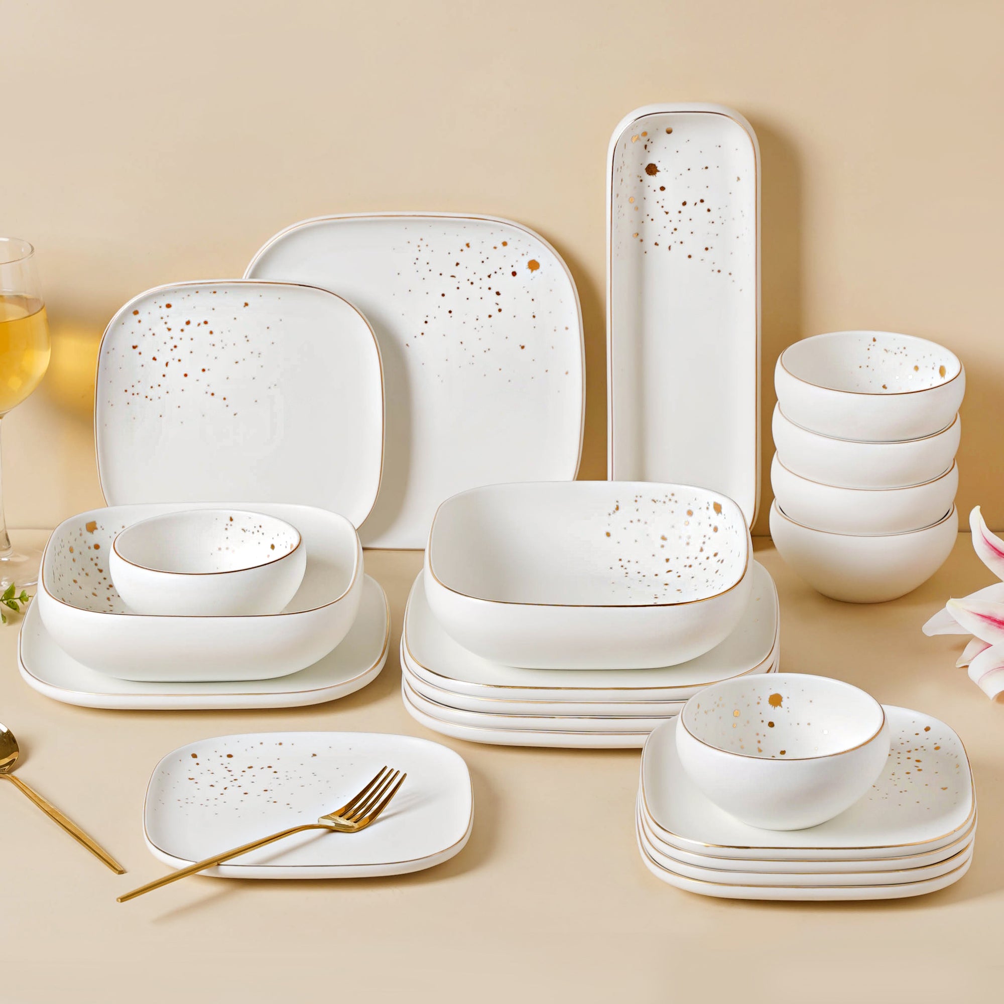 A well-laid table can add to one's appetite, and that's one of the many reasons why the CARA White dinner set is something one should add to one's crockery collection. It's time to re-decorate one's simple house with luxurious ceramic crockery since more and more parties and get-togethers are taking place indoors! If one loves serving grandly at a casual or formal event, the CARA dinner set is just ideal. The material fusion and a splash of gold bring a touch of royalty to the warm, inviting atmosphere the collection sets the mood for. The plates and bowls from the range serve as a welcome reminder that tableware does not need to be covered in a plethora of designs to stand out. The tableware set adds beauty and makes everything seem like going together in sync.