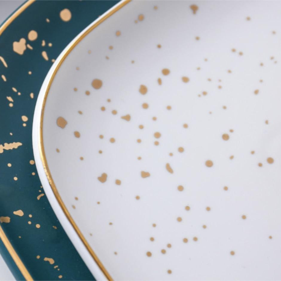 The CARA white ceramic dinner plate should be hand washed with mild detergent and cold water after every use. However, it is important to remember that the plate has lustrous gold detailings, hence should not be microwaved.