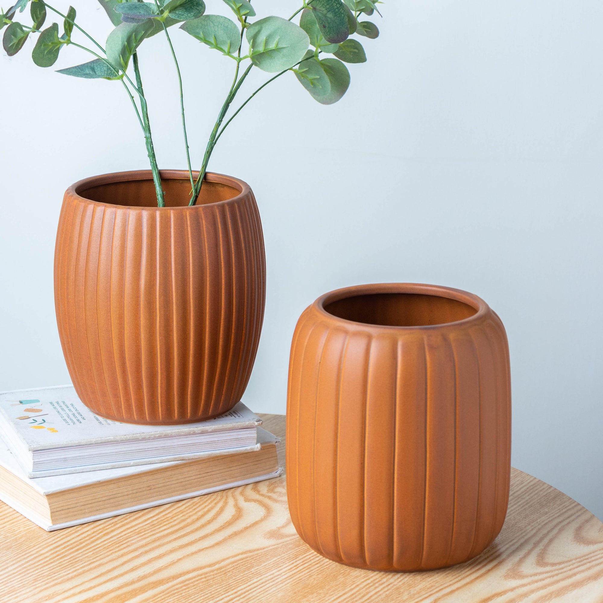 Terracotta-style products are the topmost selection of any curator. Due to its feasibility and environment-friendly quality, it is considered the best material for vases. Its body is bejeweled with a unique texture of linear banding and nominates itself as the best home for baby succulents. Nestip: Use it in any section of indoor planters, or to increase the aesthetic tone of any corner of the room