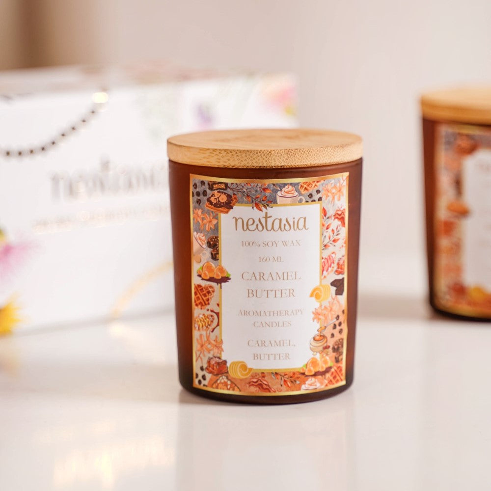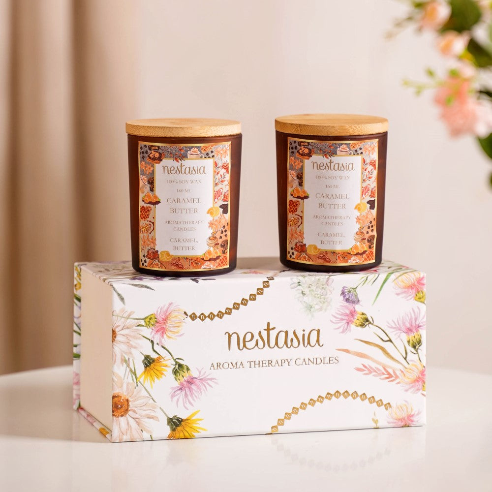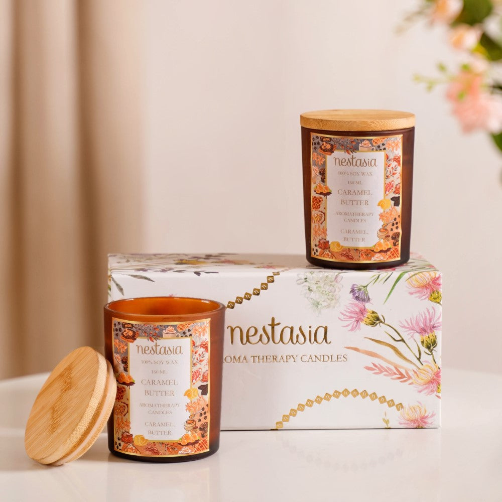 Relax and rejuvenate your mind with Nestasia's collection of scented candles. Our glass candle jars come with infused natural fragrance oils and can be perfect for enjoying a refreshing aromatherapy experience right at home. The vegan soy wax and the lead-free wick of our candle jars ensure that no toxic fume is emitted on burning the candle even for long hours. Light up the scented candle jars to create a soothing and cosy ambience and spend some quality time.