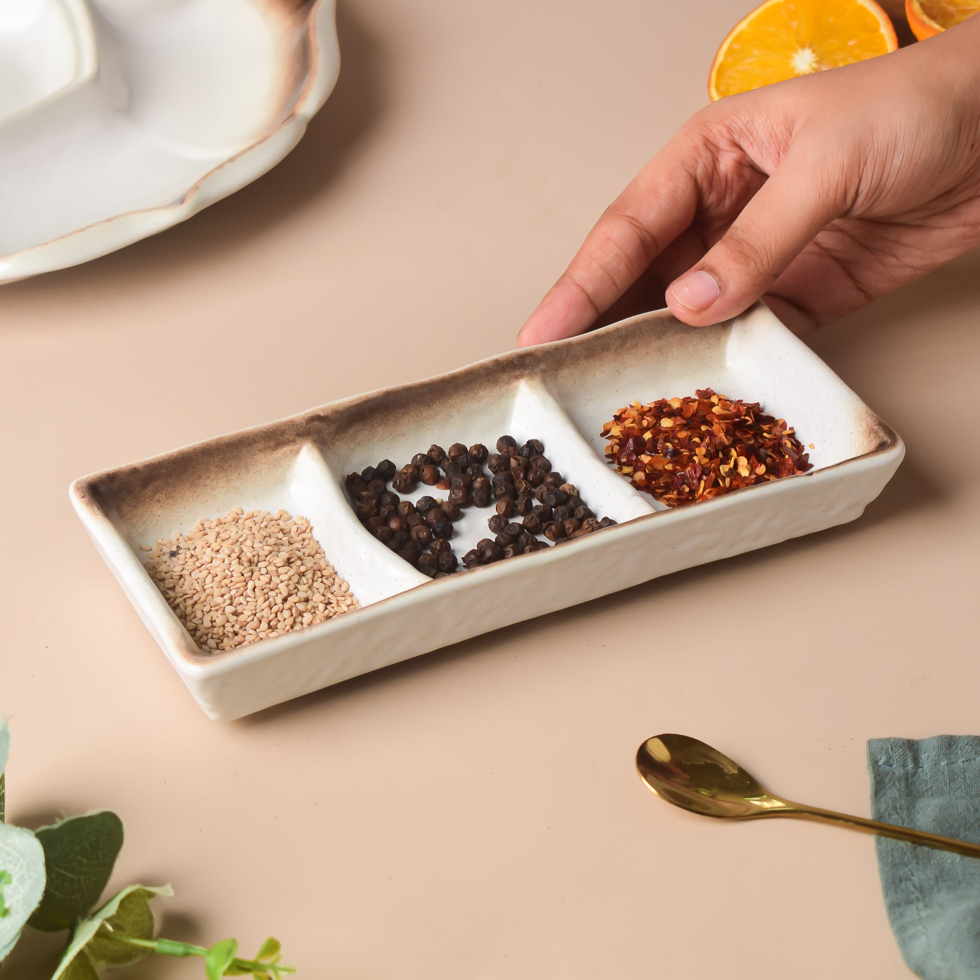 The earthy sectioned dip plate is ideal for serving chutneys, dips, condiments, or hot sauces and comprises 3 compartments. The rustic dip plate is excellent for serving a variety of flavoured chutneys with foods like samosas, momos, fries, and other snacks. On the weekends, indulge in all the junk food one desires, or make the weekdays feel like the weekends by binge-eating and binge-watching. The handmade dip plate's sleek matte finish adds to the table's allure.