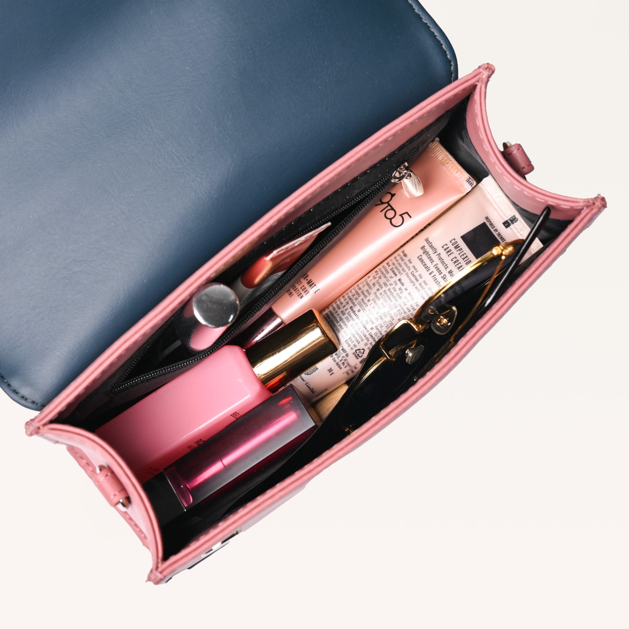 Design: This box-shaped, sleek handbag is made from premium PU leather and includes two secure magnetic clasps with a top flap for closure. Its water-resistant polyester lining ensures durability. With a spacious main compartment, a zipped pocket, and an open pouch for organisation, this bag is as functional as it is stylish.