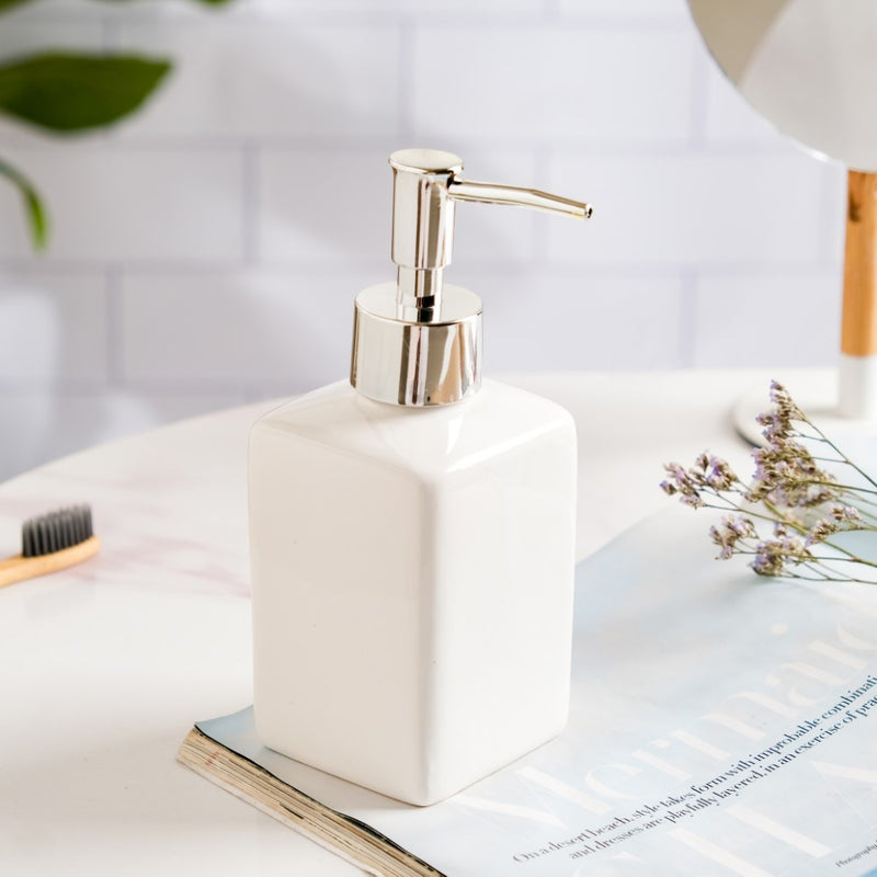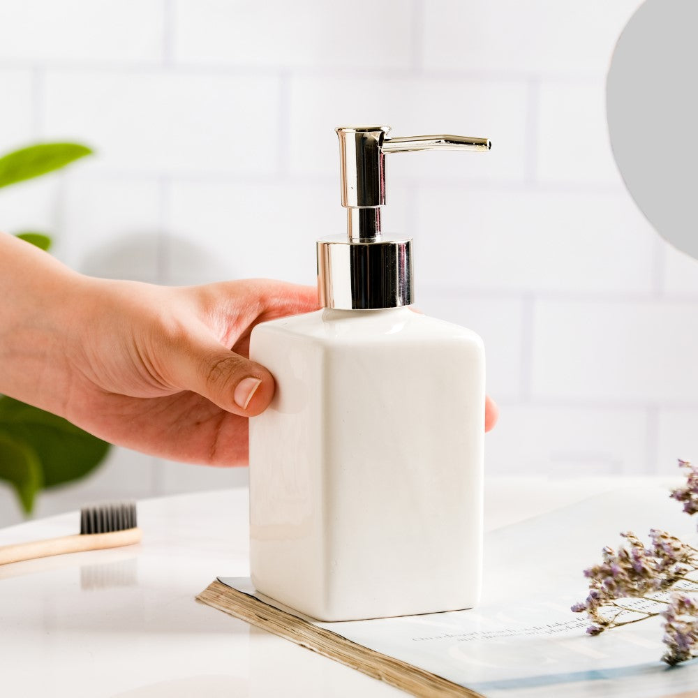 The soap dispenser is easy-to-use with an elegant appearance and can be used in the bathroom or kitchen as a liquid soap dispenser. The dispenser is a modern and practical bath decor essential that will uplift the atmosphere of the bathroom. The dispenser can be used for liquid soap, detergent, lotion, sanitizer, shampoo, and so on. The white ceramic dispenser is also a great gift for your family and friends on housewarmings, anniversaries, festivals, and others.