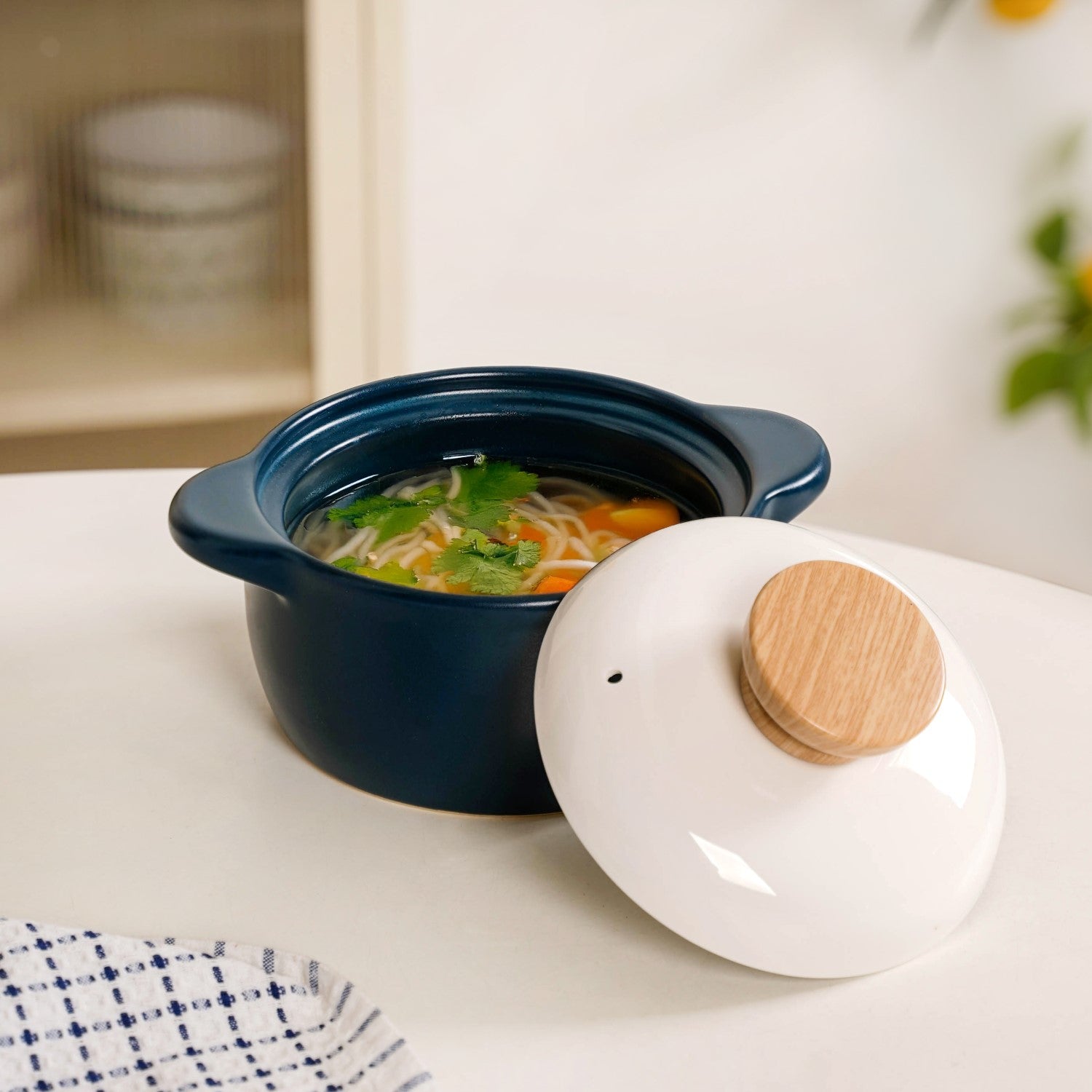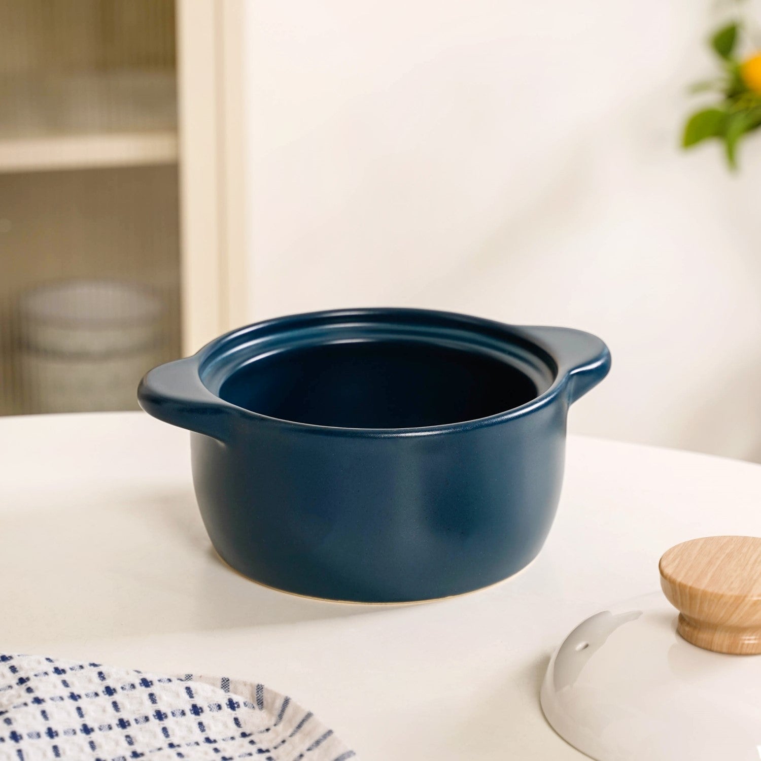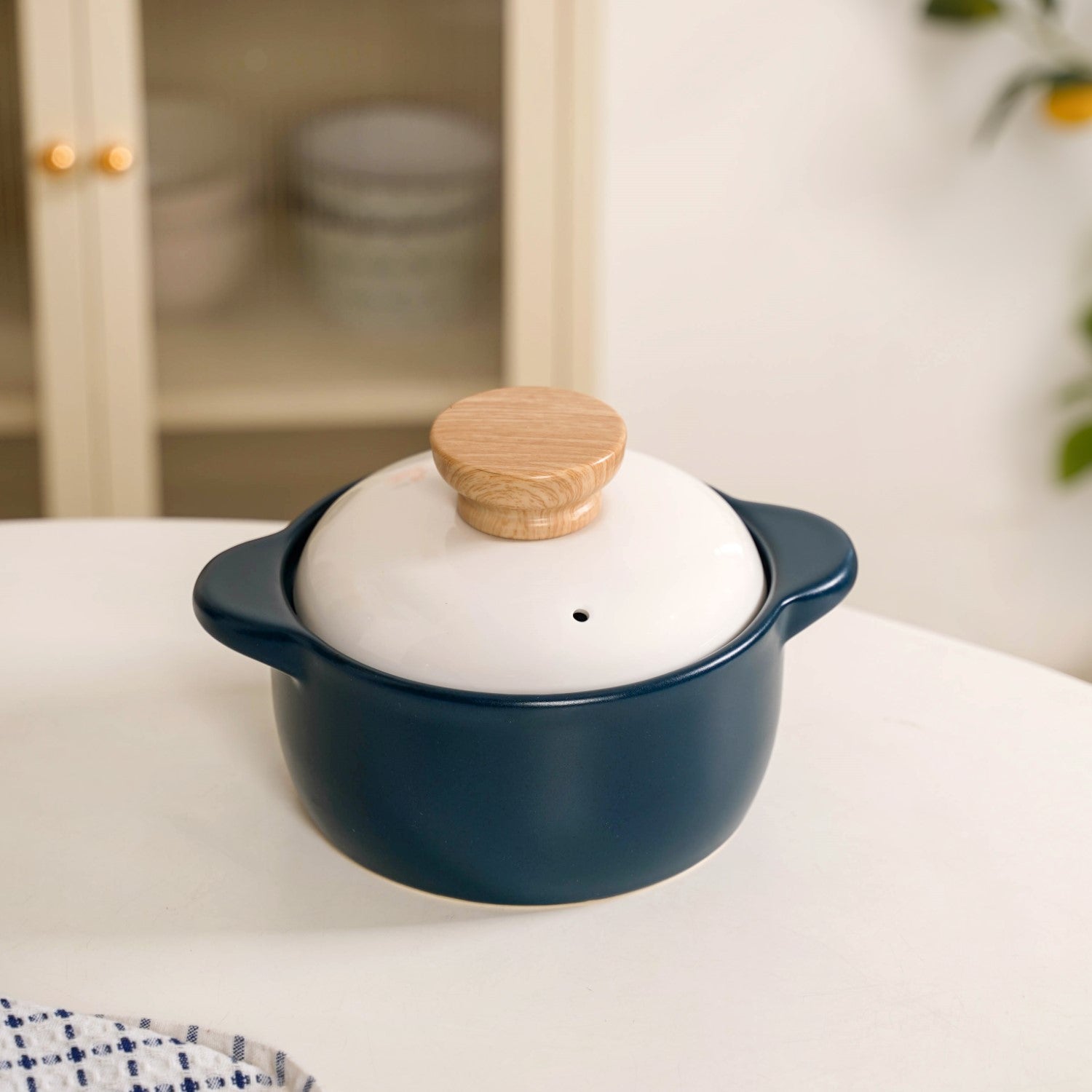 Compact and charming, this teal ceramic cooking pot with a crisp white lid is perfect for preparing cosy, home-cooked meals. Its stylish design and just-right size make it ideal for everyday use, whether you're simmering a hearty soup or whipping up a quick one-pot dish.