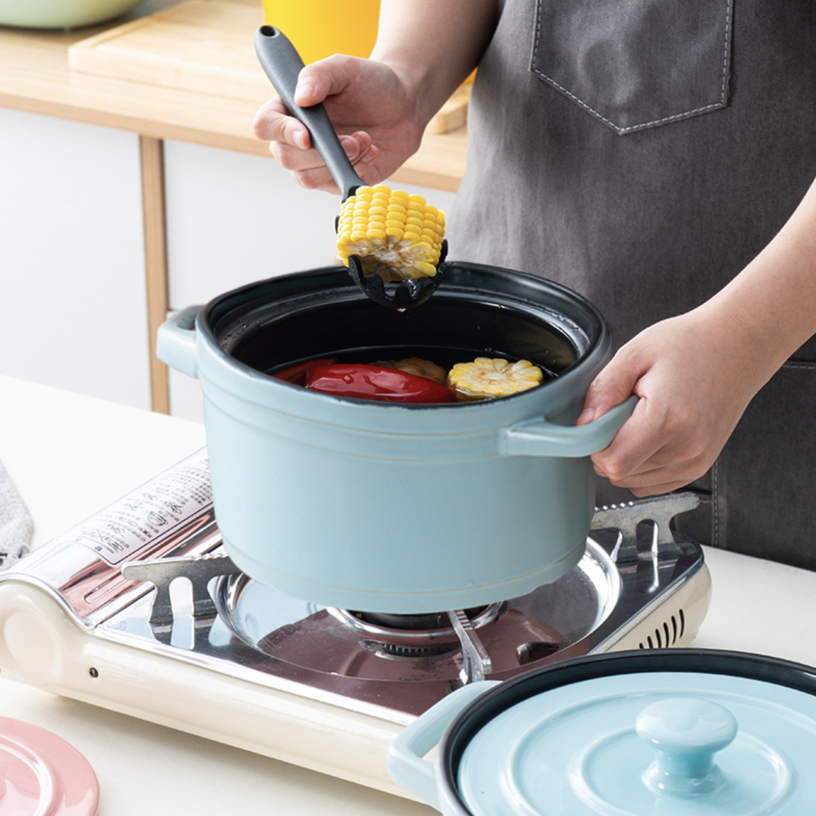 Color: Red, blue, and black Material: Ceramic Products Included: 1 cooking pot with lid Style: Red - B17MA21B199 Blue - B17MA21B202