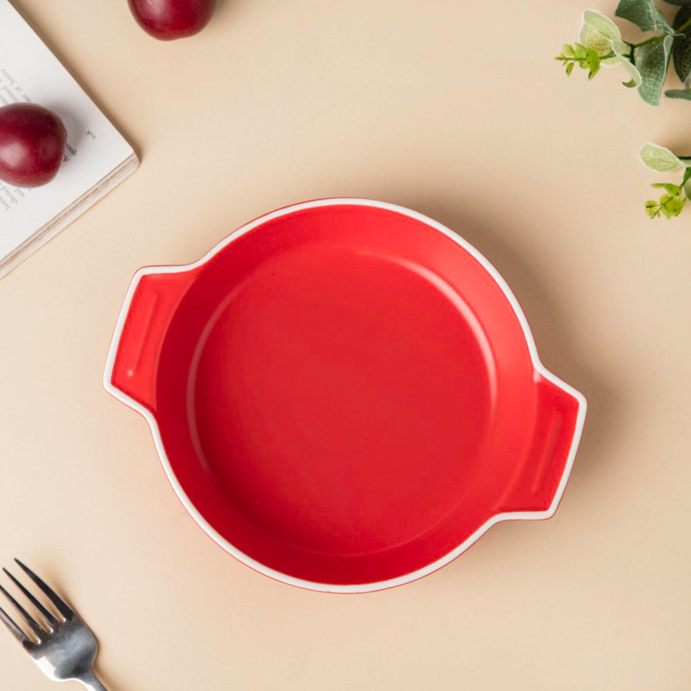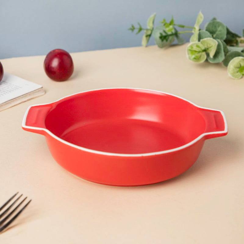 Ceramic Baking Pot is a colourful pot that comes with a matte finish, and can be used as aking and serving pot. The baking bowl comes with a handle on each side, providing a modern look and making them easy to pick, place, and pass around the table.