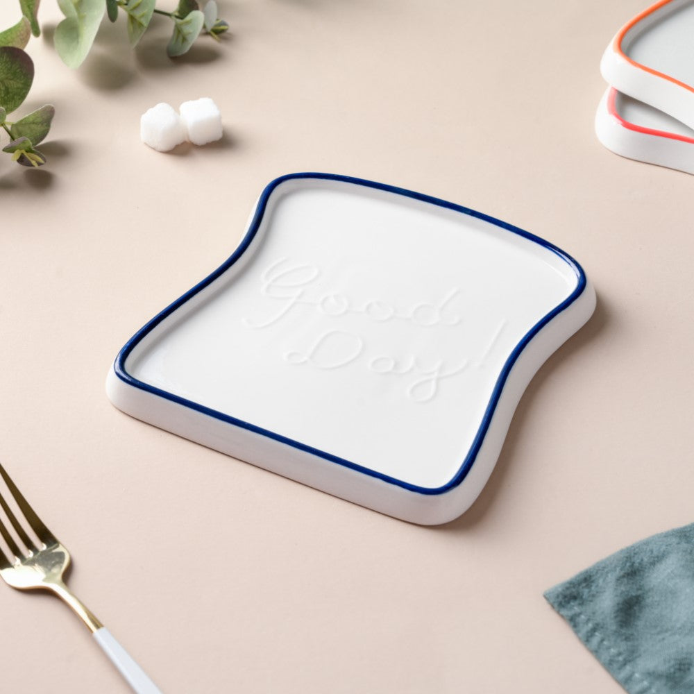 The breakfast plate resembles the shape of freshly baked bread straight out of the oven. Start one's day with a delicious cooked breakfast on the ceramic plate. Wishing a 'good day', the plate boosts a positive start to the day. The plate is also apt for serving evening snacks like sandwiches, burgers, or samosas.