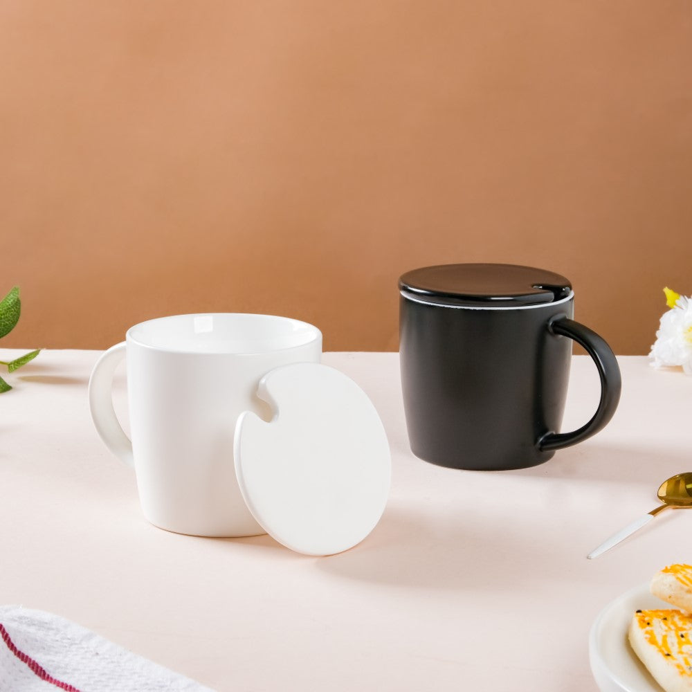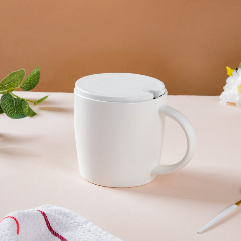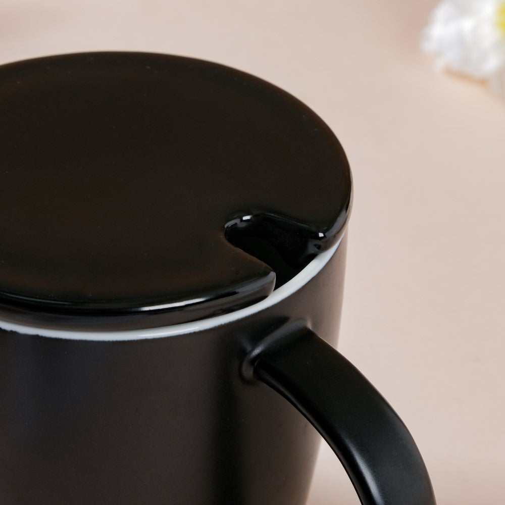 Ceramic cup with lid that comes in two classic matte colours. The tea cups with lid can be used as coffee cups or to serve immunity drinks or flavoured tea. The ceramic mugs have a solid colour that can complement any serving specially while hosting guests. The lid of the cup can keep the drink warm and has a cut to support a tea spoon that can be placed in the cup. Teaspoon is not included in the product.