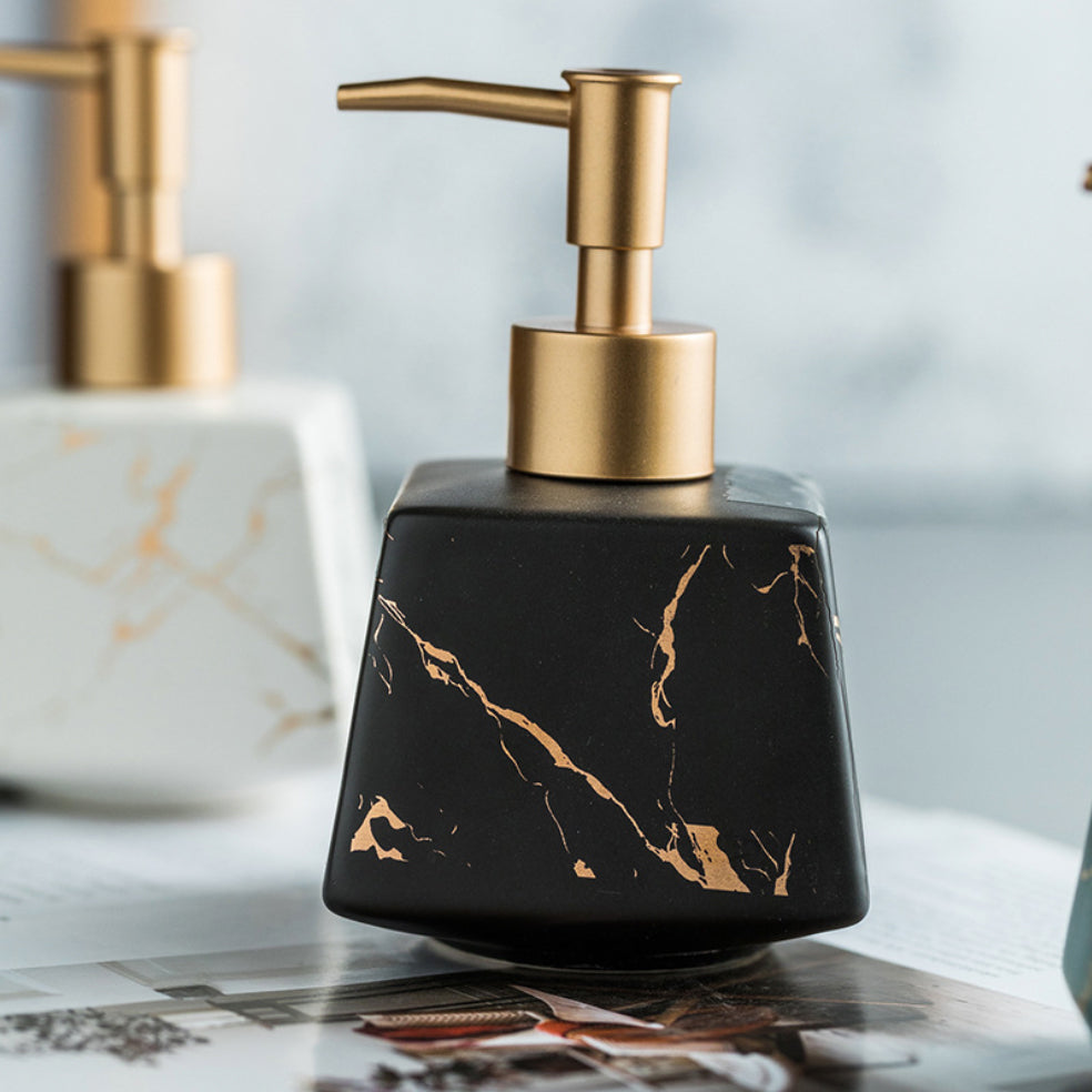 To prevent water spots or stains, dry the ceramic soap dispenser immediately after use. If you notice any stains, promptly wipe the soap bottle with a damp cloth and mild soap.