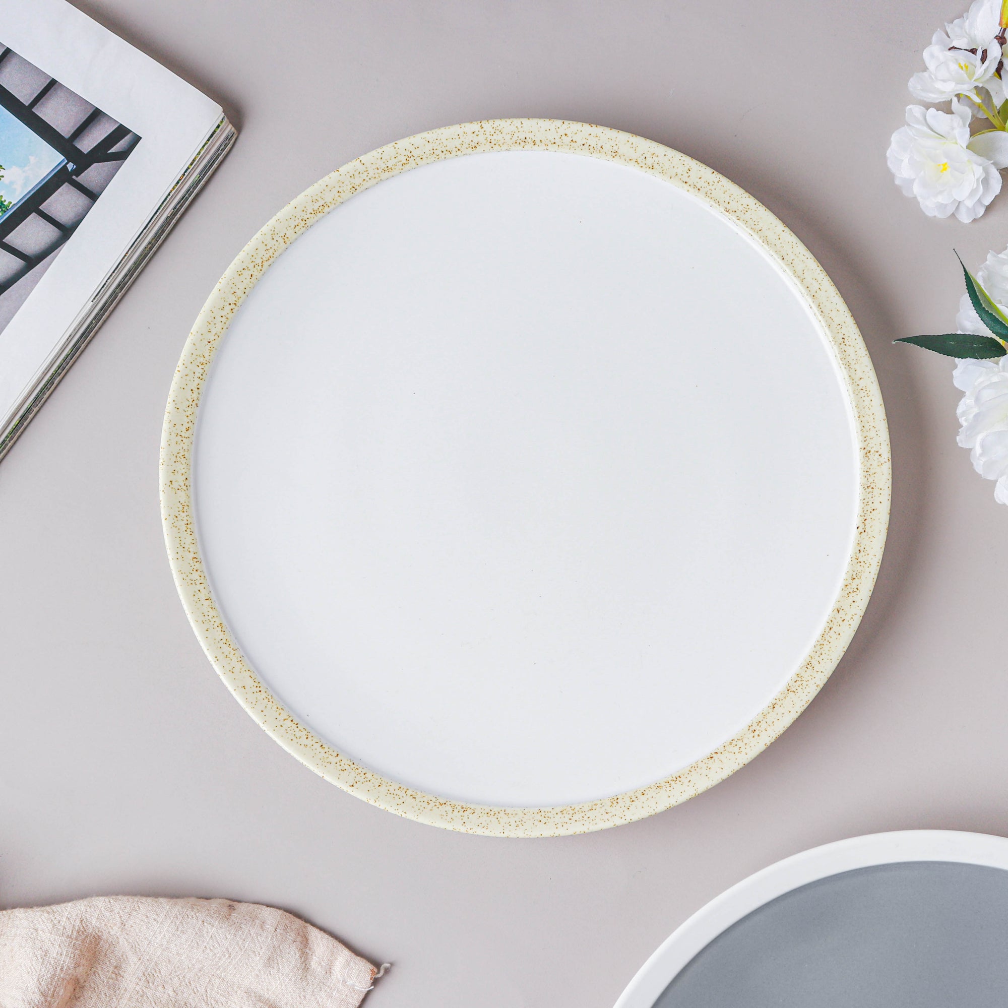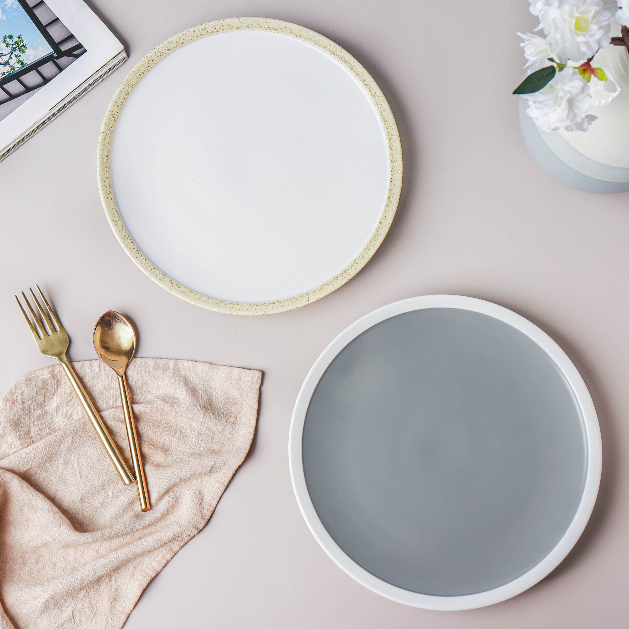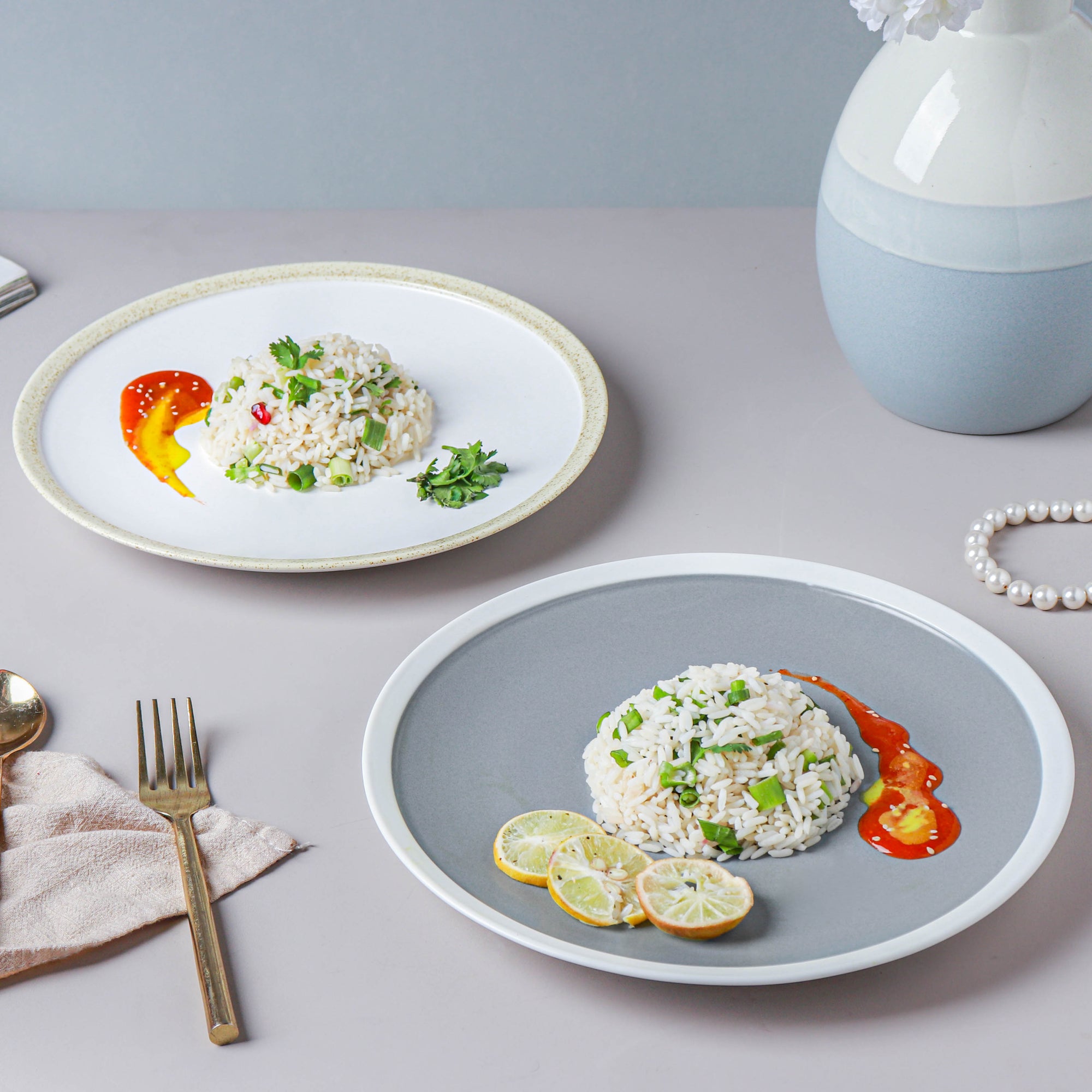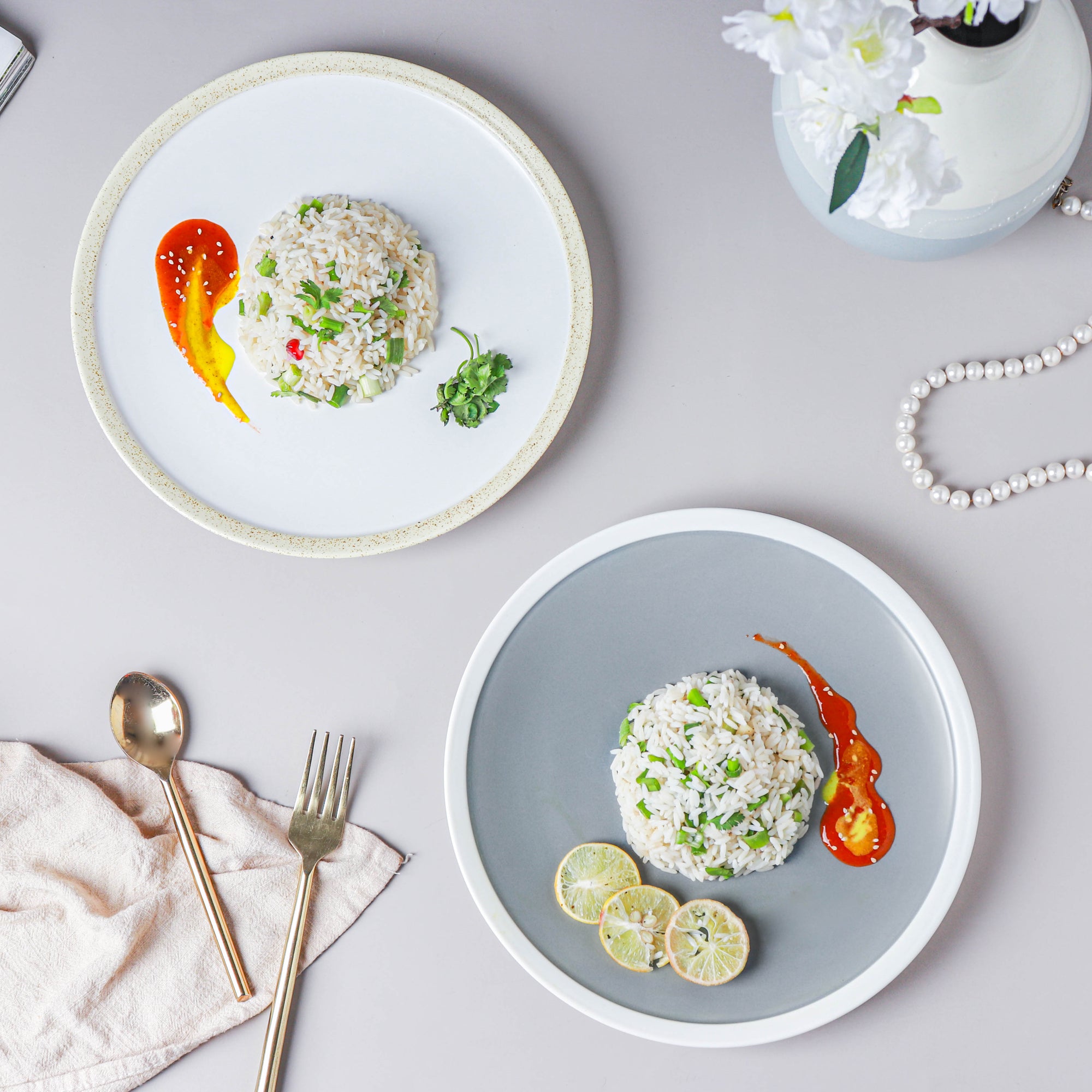 The grey and white dinner plate crafted in ceramic comes with a glazed finish and can be used as an appetizer plate and a noodles plate. The ceramic plate comes in two neutral toned color variants which will complement any urban and modern home setting. The dishwasher-safe and microwave-safe plates can be used for reheating food. The opulent dinner plate is best when plating a vibrant main course like grilled lamb and gravy. Nestip: The versatile round dinner plate with rim can be used for serving at both formal and informal events. Size: 25cm D x 2.5cm H (10″D) Color: White and grey Material: Ceramic Products included: 1 plate Style: White-Gnov153 Grey-Gnov154