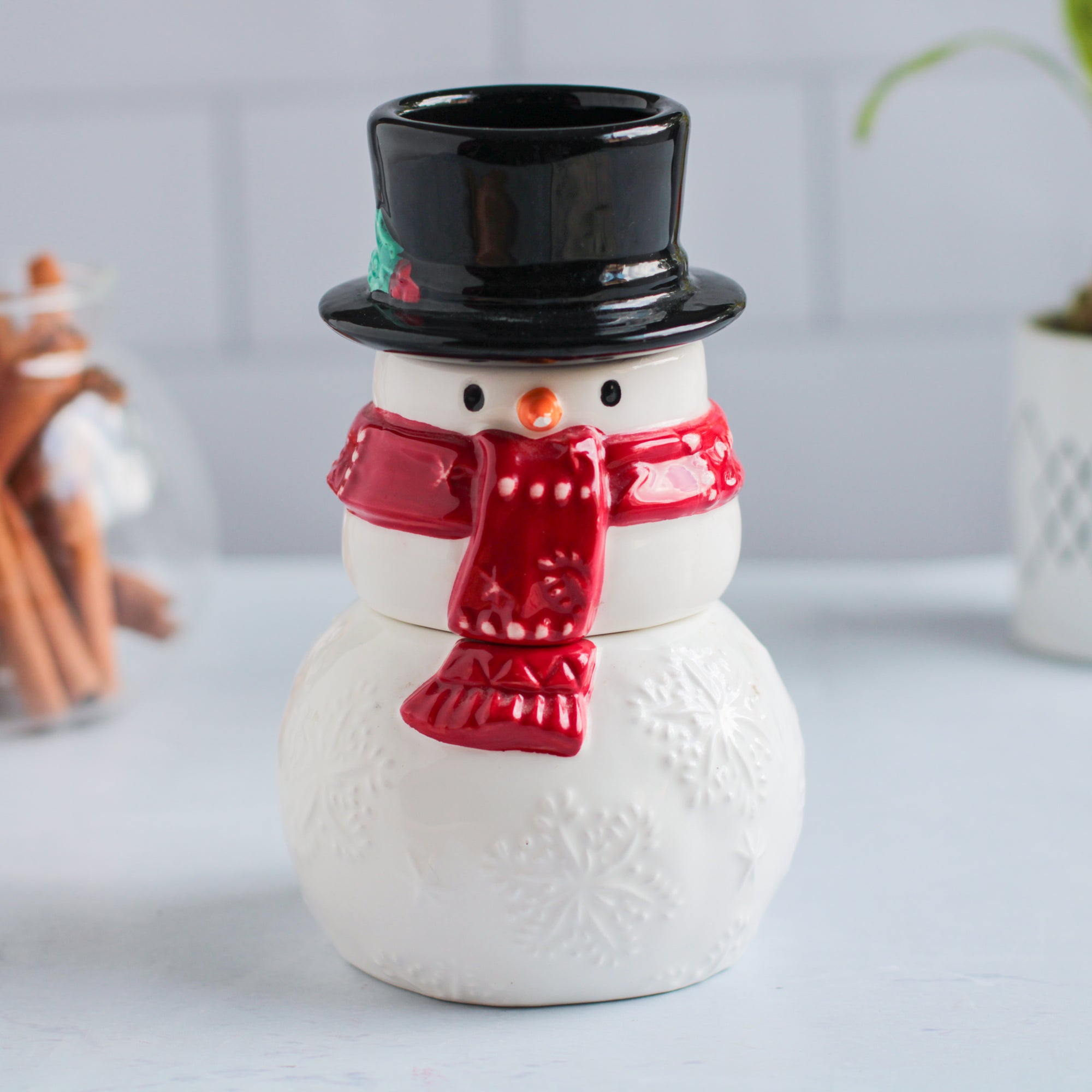 The snowman salt and pepper shaker is an innovative addition to make to the table. Wearing a red muffler and a black hat, the snowman with the snowflake engraved design is as eye-pleasing as it is useful. The salt shaker is smaller in size than the pepper shaker and the two are marked with an 'S' and a 'P'. The hat has a cavity that can be used to pour chutney or sauce to serve with snacks, momo, and nachos. The salt, pepper, and hat units can be assembled together when placed on the table and provide a convenient solution for storing by simply separating the parts. The salt and pepper shaker is sure to become the center of attraction on any table.