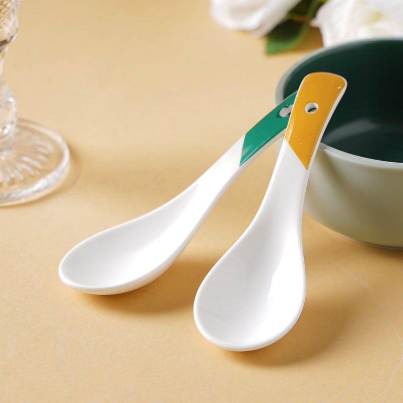 Soup is with us on the happiest and sick days. Whenever we go out to visit a restaurant, our meal starts with a warm bowl of soup. And if we fall sick, we tell our mothers to bring us a steaming bowl of soup. Soup makes us feel better in no time! Hence, we bring you an exclusive collection of ceramic soup spoons to satisfy your sudden soup cravings. Our ceramic soup spoon collection features spoons having different designs that beautifully display the modern art style in crockery sets.