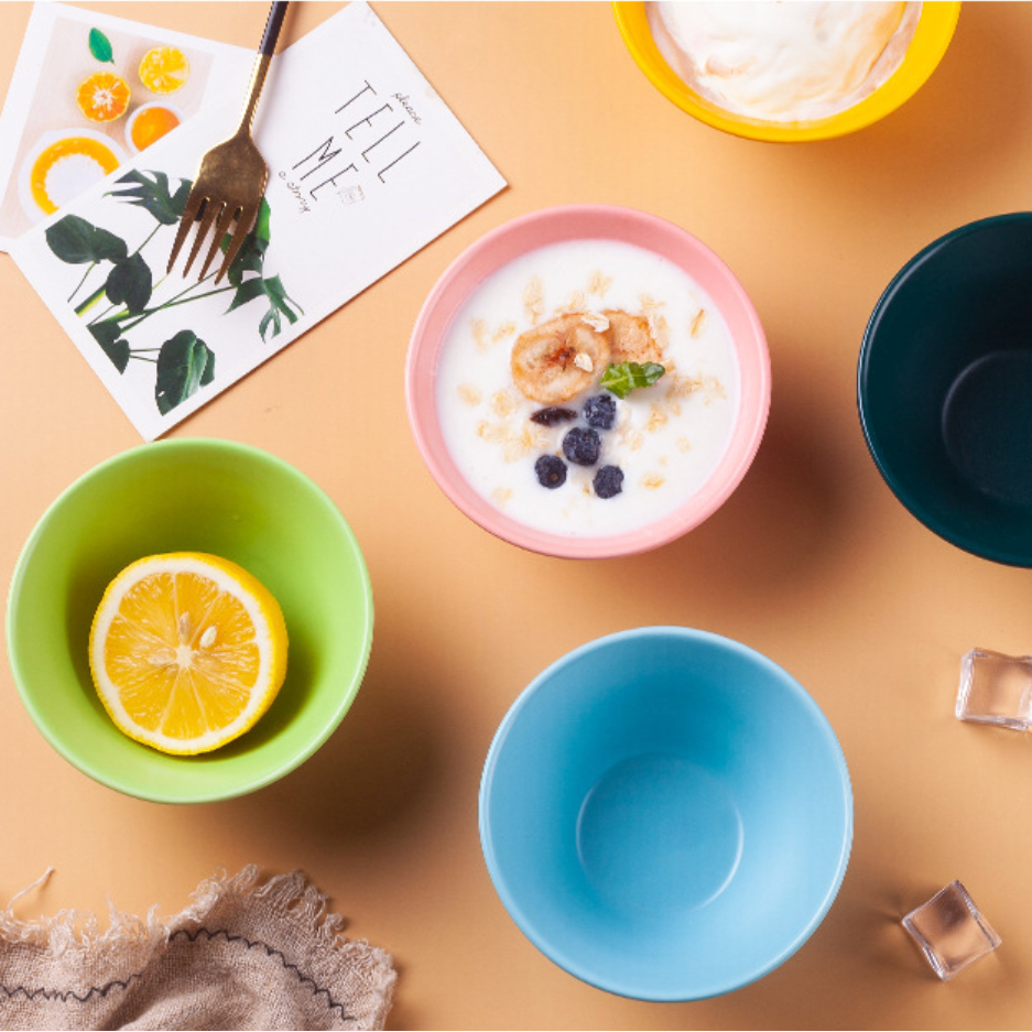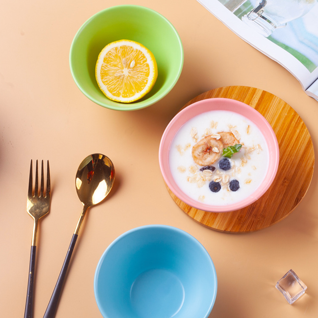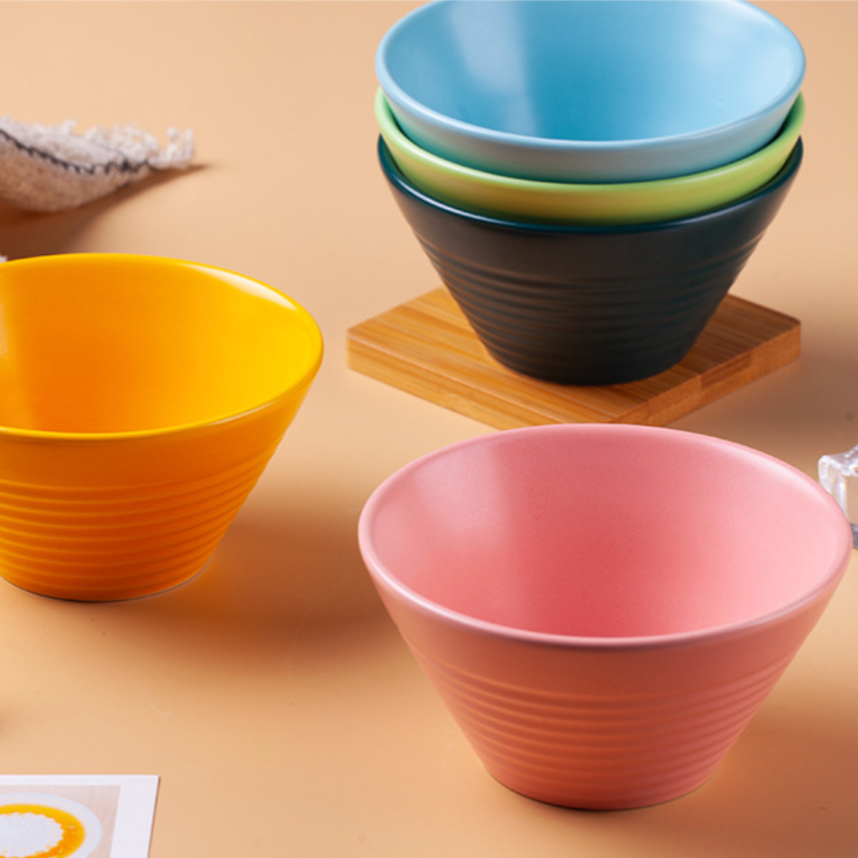 A single-tone cereal bowl with fine lines on the outer surface that give a feel of a potter's wheel. The bowls come in various colours and are ideal as breakfast bowls for serving small portions of cereals with milk or for serving individual portions of soupy noodles or desserts. The size of the bowl along with the fine lines make it comfortable to hold.