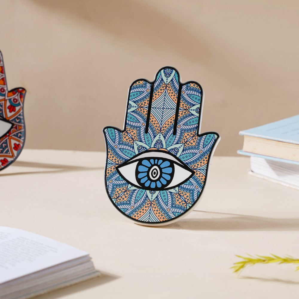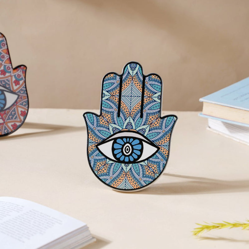 Ayin Ha'ra, commonly known as "The Evil Eye," is something that the hamsa is generally intended to guard against. The most frequent detrimental elements that the hamsa protects against are envious glances from others. Display this decorative piece in the living area to bring prosperity and positivity into the house. The hand of Hamsa is a representation of various chakras and elements.