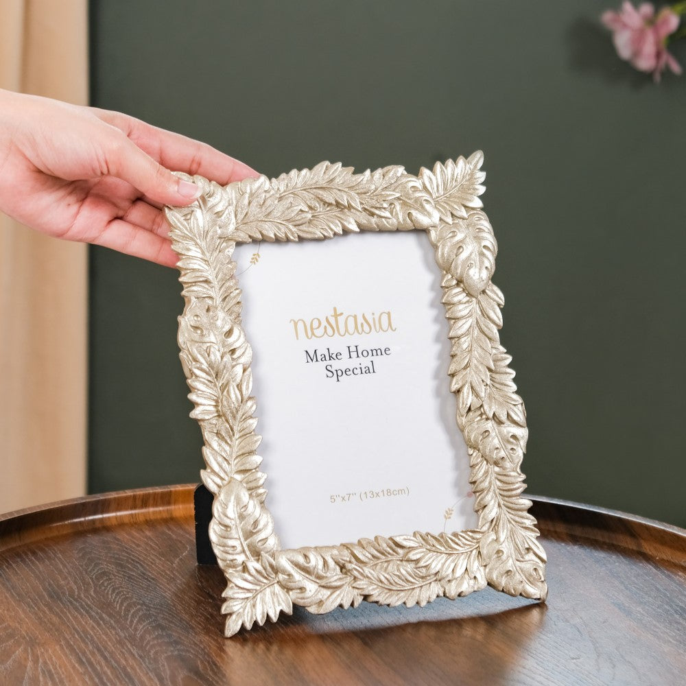 There are myriads of options when it comes to displaying your treasured moments inside the exquisite photo frame. You can line up the photo frame with others on a wall rack, your bedside table, or any tabletop. Despite where it is placed, the intricate leafy design and captivating golden hue will fill your space with charm and elegance.