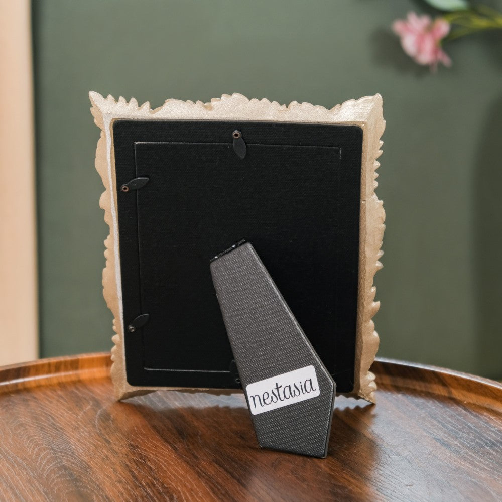 Crafted meticulously from premium-quality resin and glass, the leafy photo frame has been designed to be a lasting addition to your home decor. The captivating piece features a golden-hued overlapping leaf border, and its adaptable design makes it perfect for a range of decor styles so that you can incorporate it confidently to be a durable and long-lasting companion to your home.