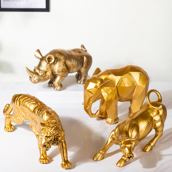 The majestic charging bull statue in gold is a symbol of strength and prosperity. Crafted from durable resin material, this exquisite sculpture captures the essence of power and determination. Inspired by the iconic stock market bull, it is perfect for those in the world of stock market, investing and trading. With its intricate detailing, the charging bull statue adds a touch of elegance to any space. The gold finish exudes opulence, while the anti-skid base ensures stability. Whether displayed in an office, living room, or as a statement piece in a financial institution, this statue is a testament to ambition and success.