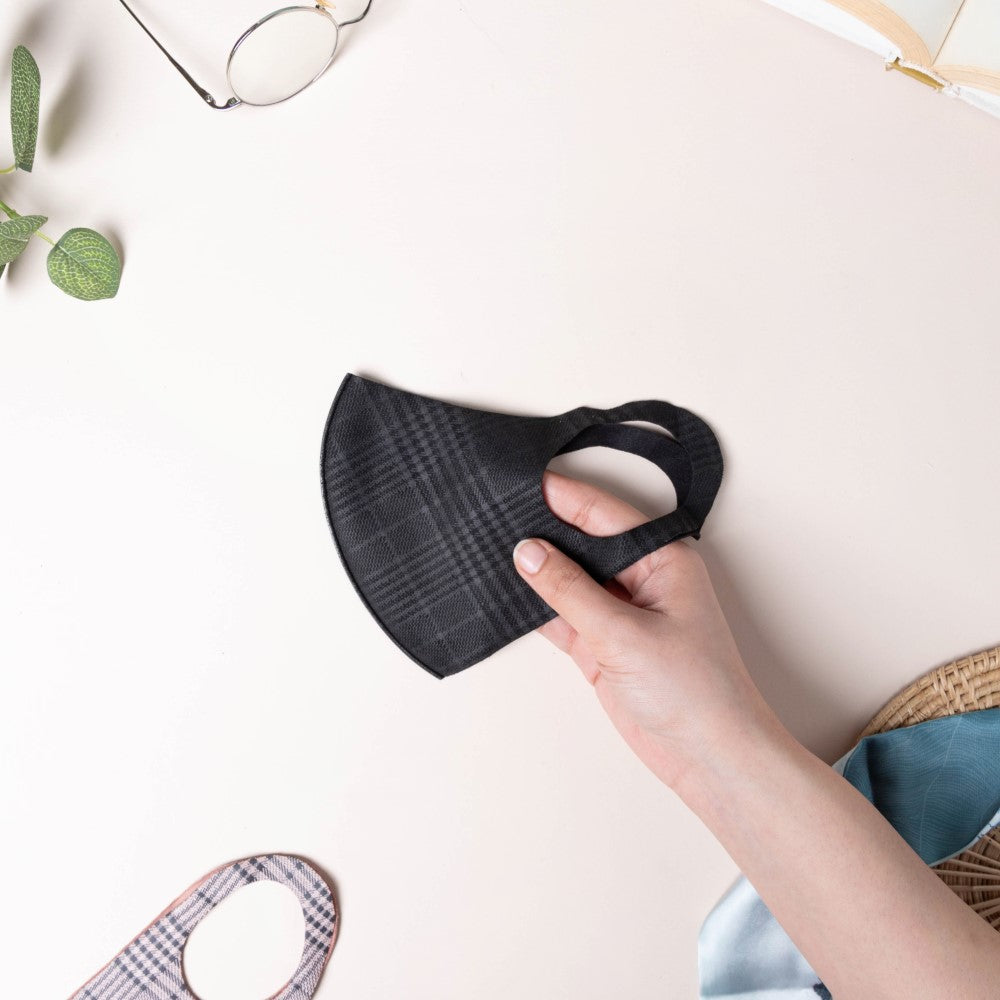 Checkered Pollution Protect Face Mask Black Set Of 4