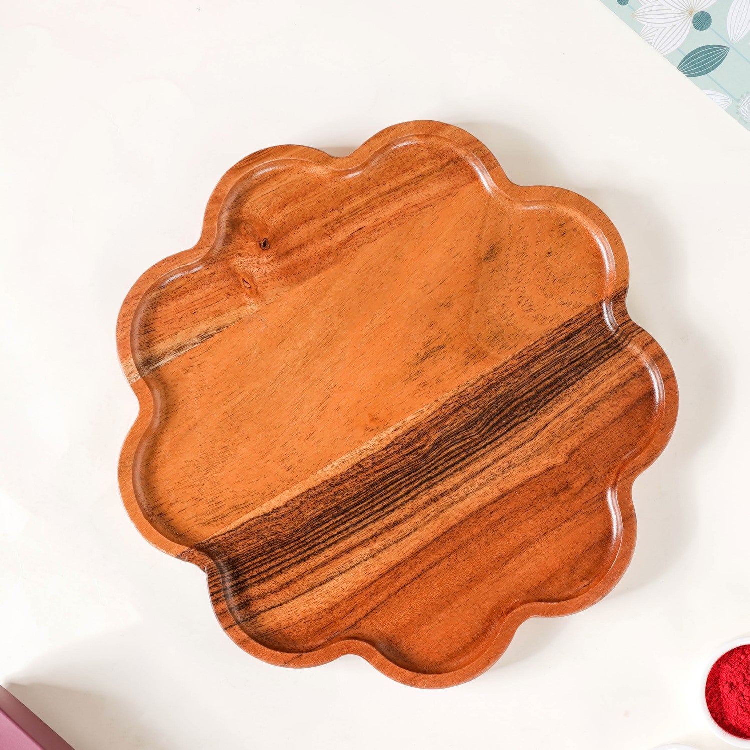 Flower Shaped Acacia Wood Serving Platter |