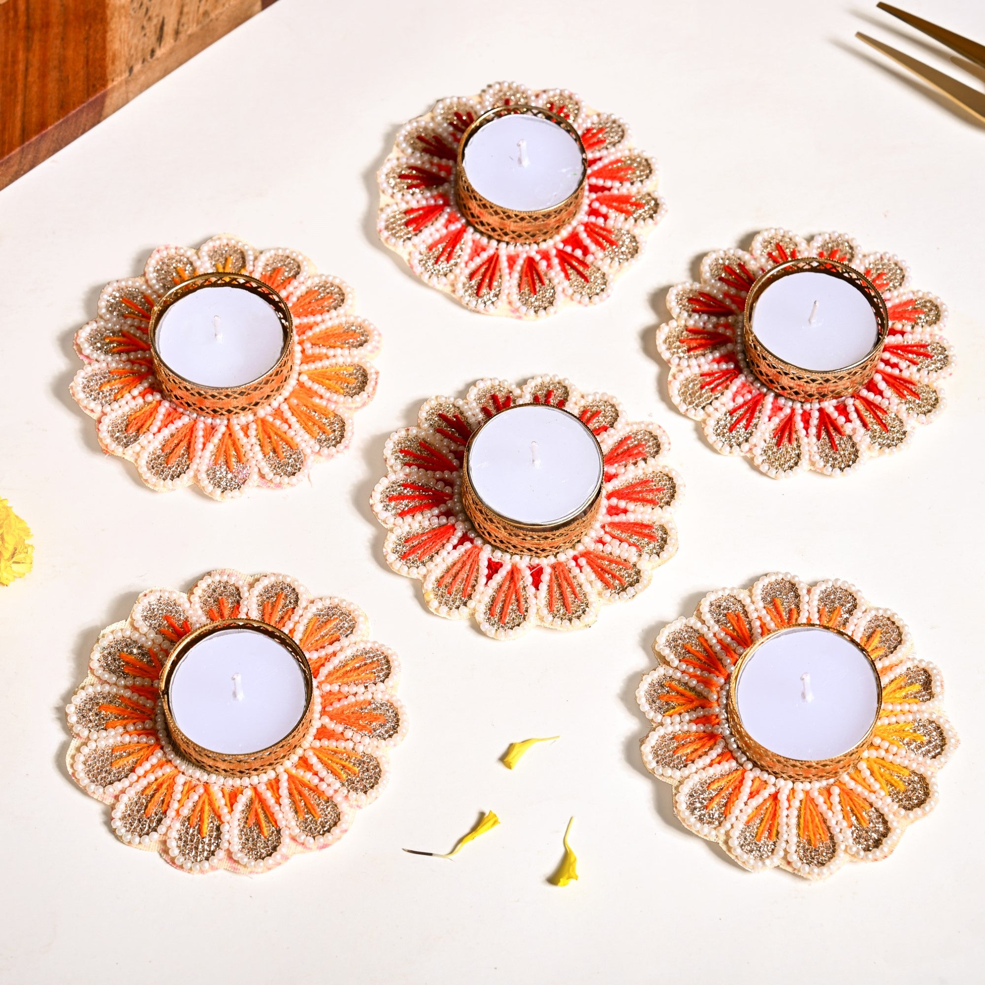 Applique Petal Tea Light Holders With Faux Pearls Set Of 6 |
