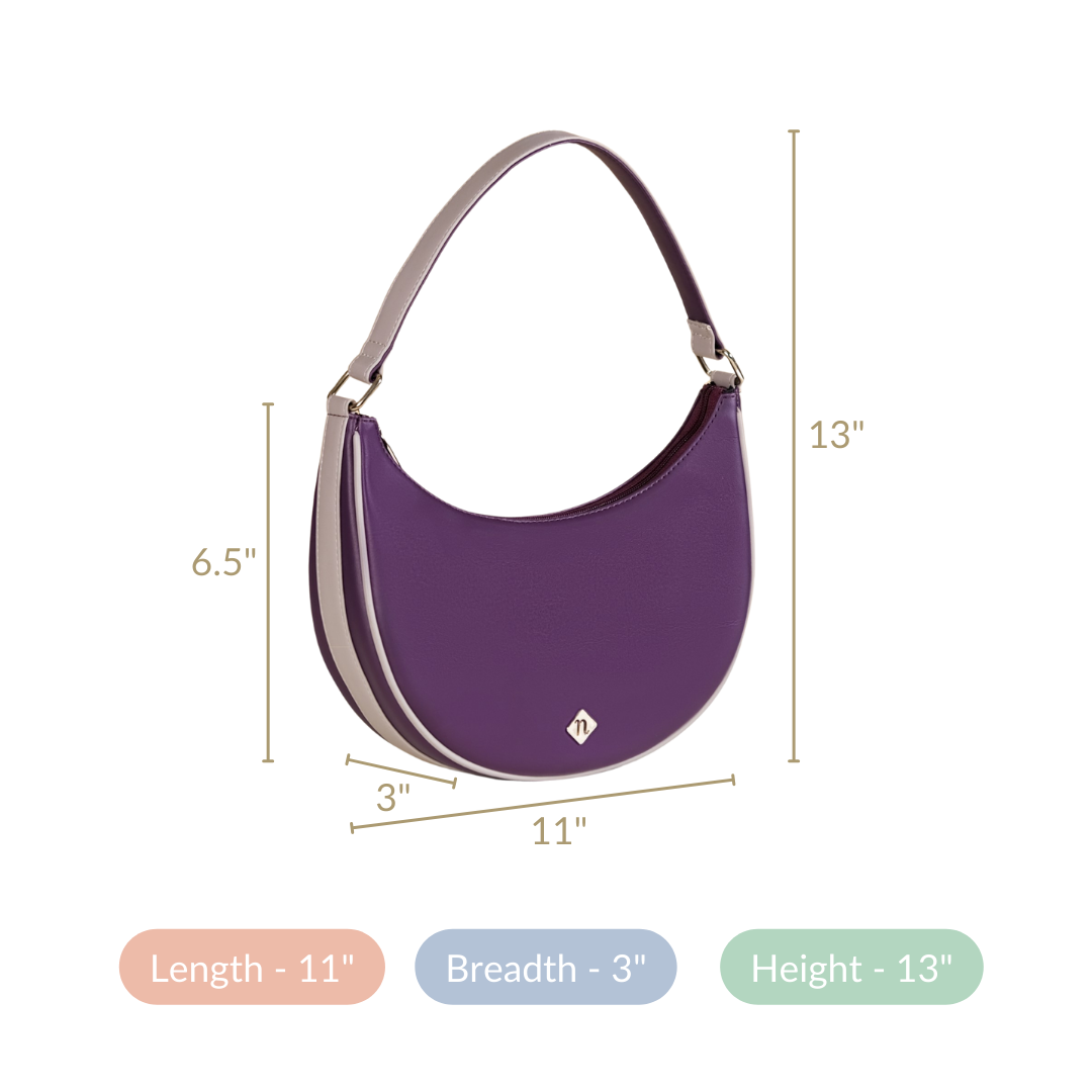 Consider pairing the bag with light tones or neutral colours to complement its purple shade. Additionally, accessorise with minimalist jewellery to enhance its chic appeal without going overboard.