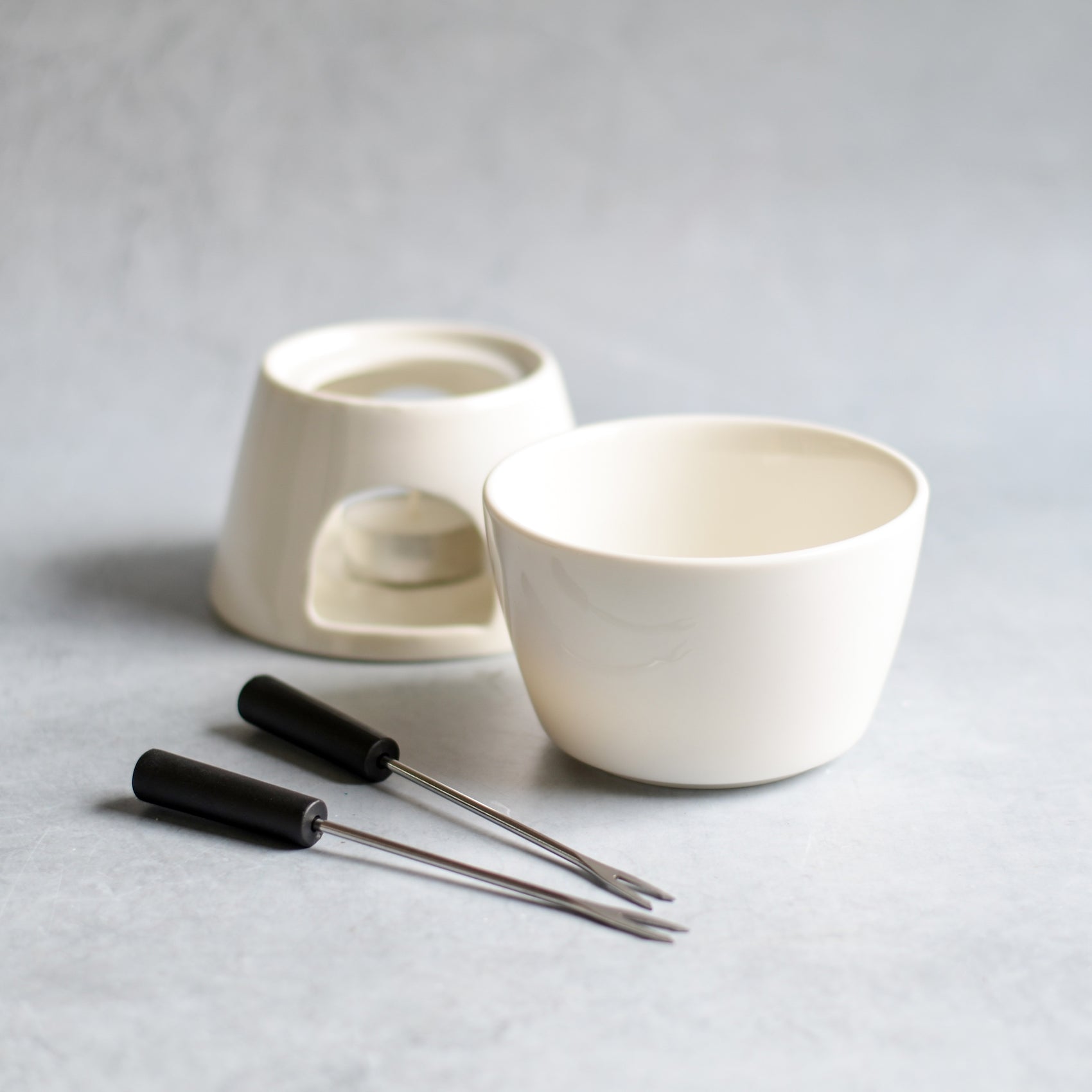 Products Included: 1 bowl, 1 burner, 2 forks, 1 tea light candle