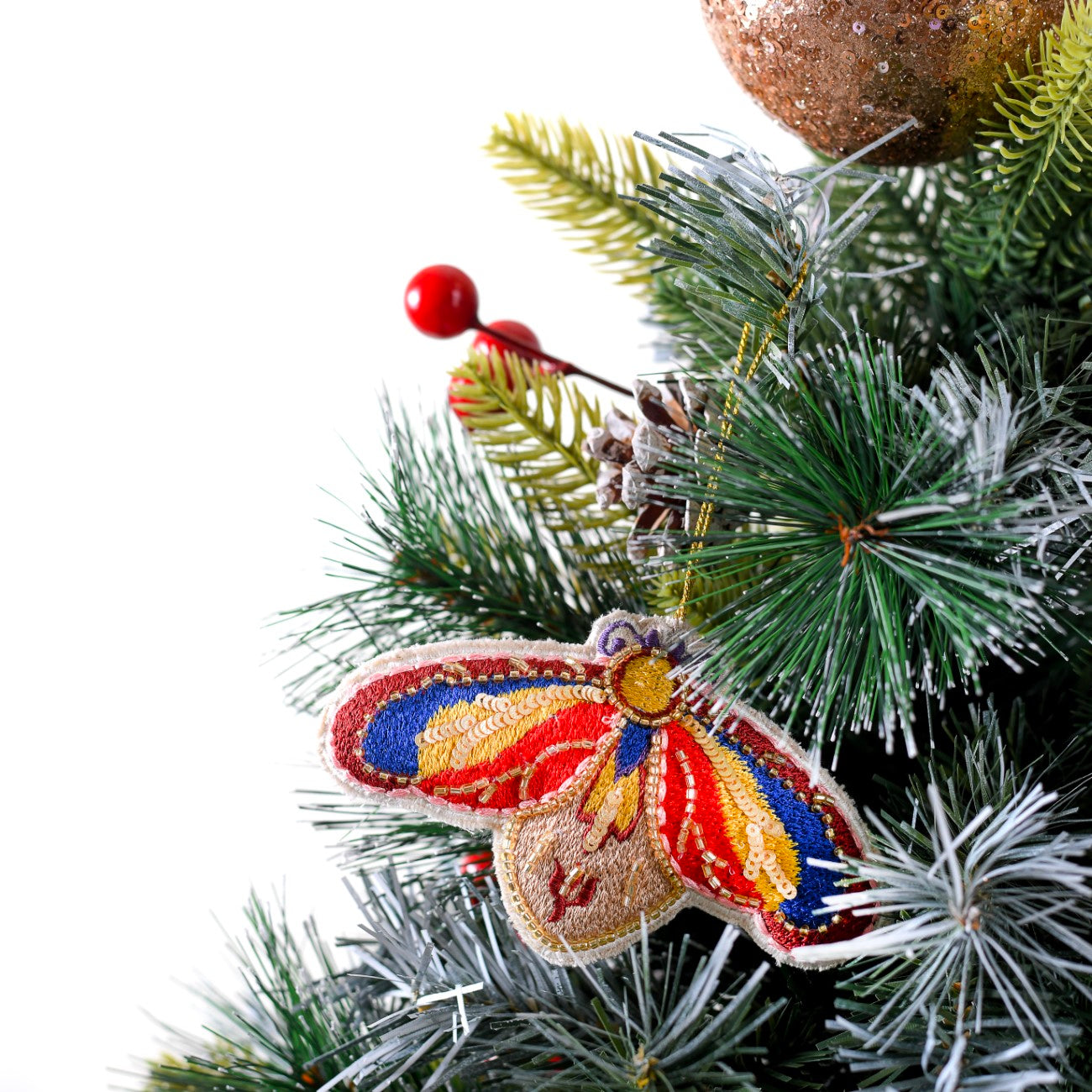 To preserve the festive sparkle of these ornaments, gently dust with a soft, dry cloth, avoiding water due to artificial bead embellishments. Handle with care, use compressed air for intricate areas, and store in a padded compartment when not in use to prevent damage or dust accumulation.