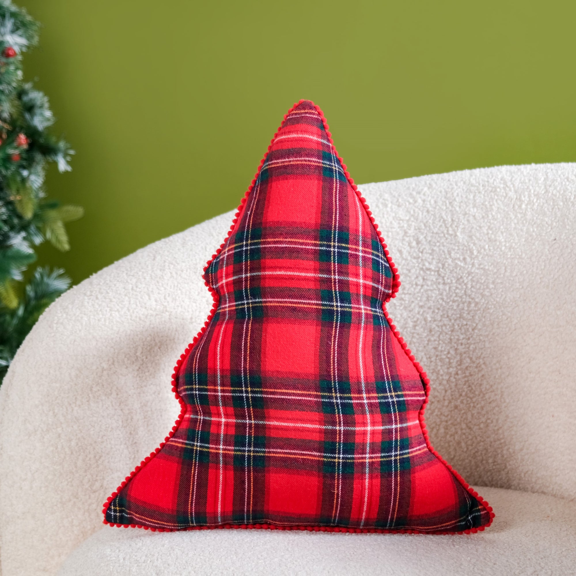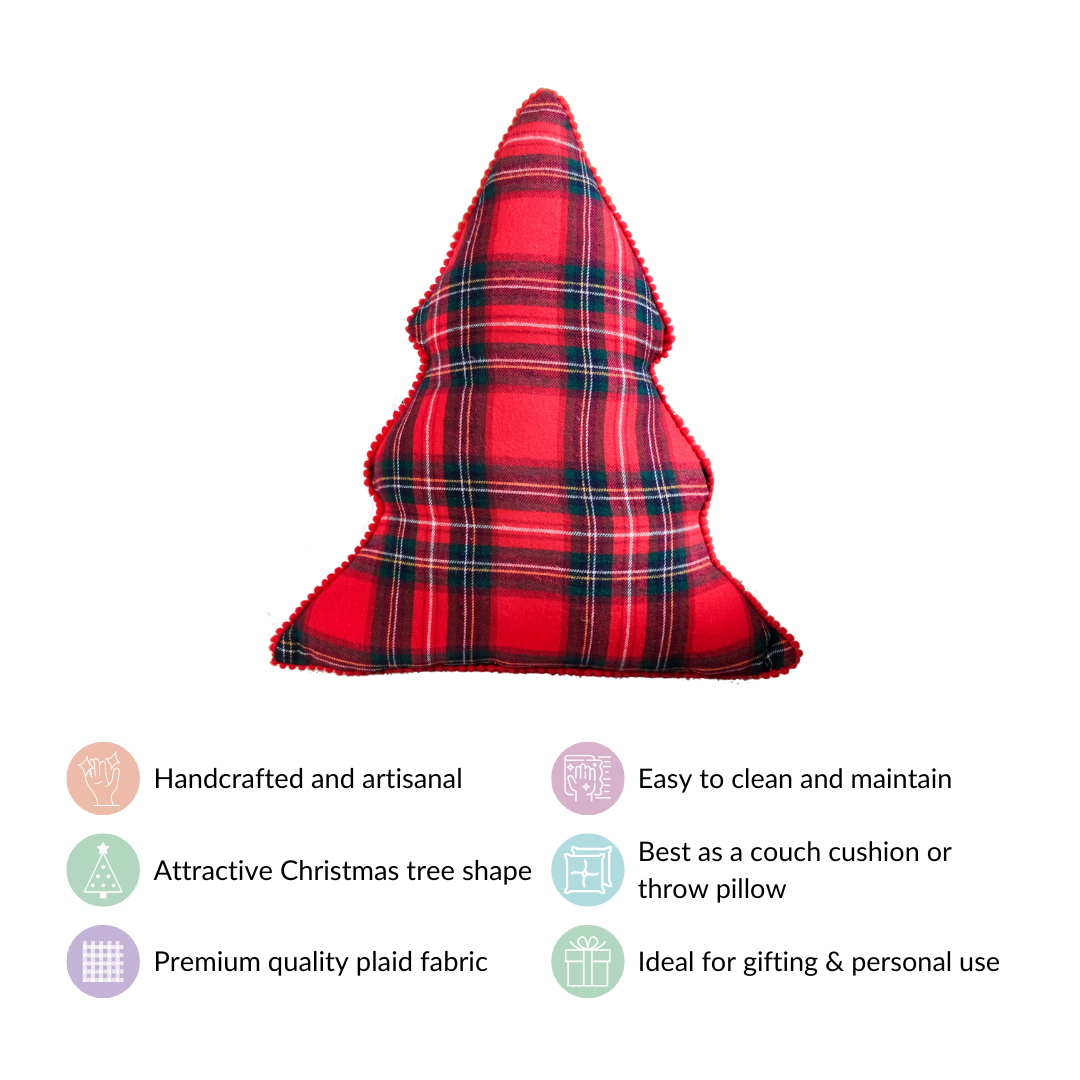 The Christmas tree throw cushion cover is an ideal gift choice. Its unique and quirky design, crafted with premium plaid fabric and adorned with red lace, adds a touch of sophistication to any space.