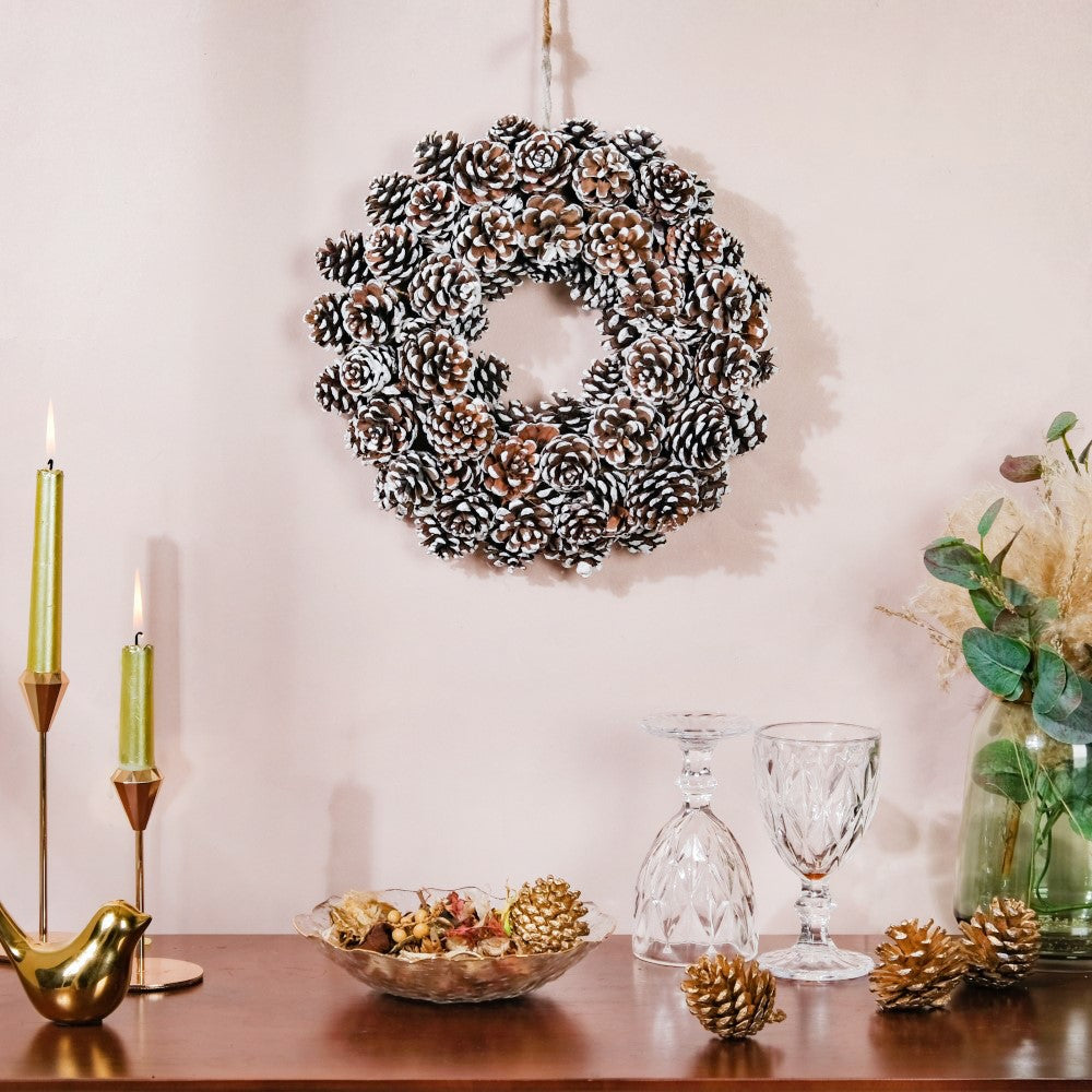 The ideal way to mark the start of the holiday season is with a Christmas wreath on the front door. Replace the standard green Christmas wreath with the unique handcrafted pinecone Christmas wreath for a distinctive, and eye-catching Christmas decoration alternative. Whether you wish to go for a regal and conventional style or a maximalist-themed Christmas home decor, our earthy Christmas wreath is the perfect way to bring festive magic into the home. Our holiday-themed wreath can be used as a magnificent addition to your table's centrepiece, hung on the shelf, or decorated with candles.