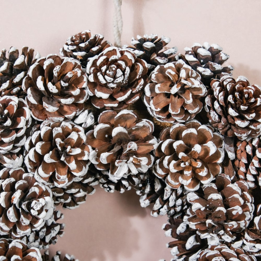 Christmas Wreath Of Snowy Pinecones 11 Inch