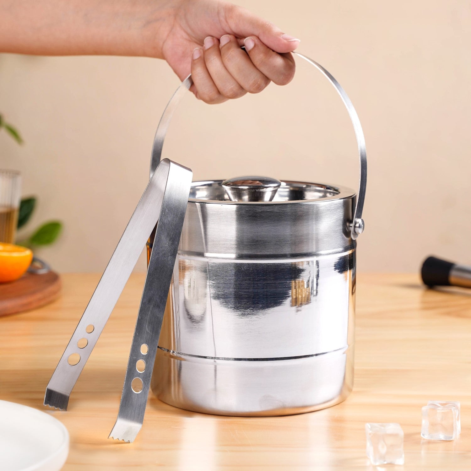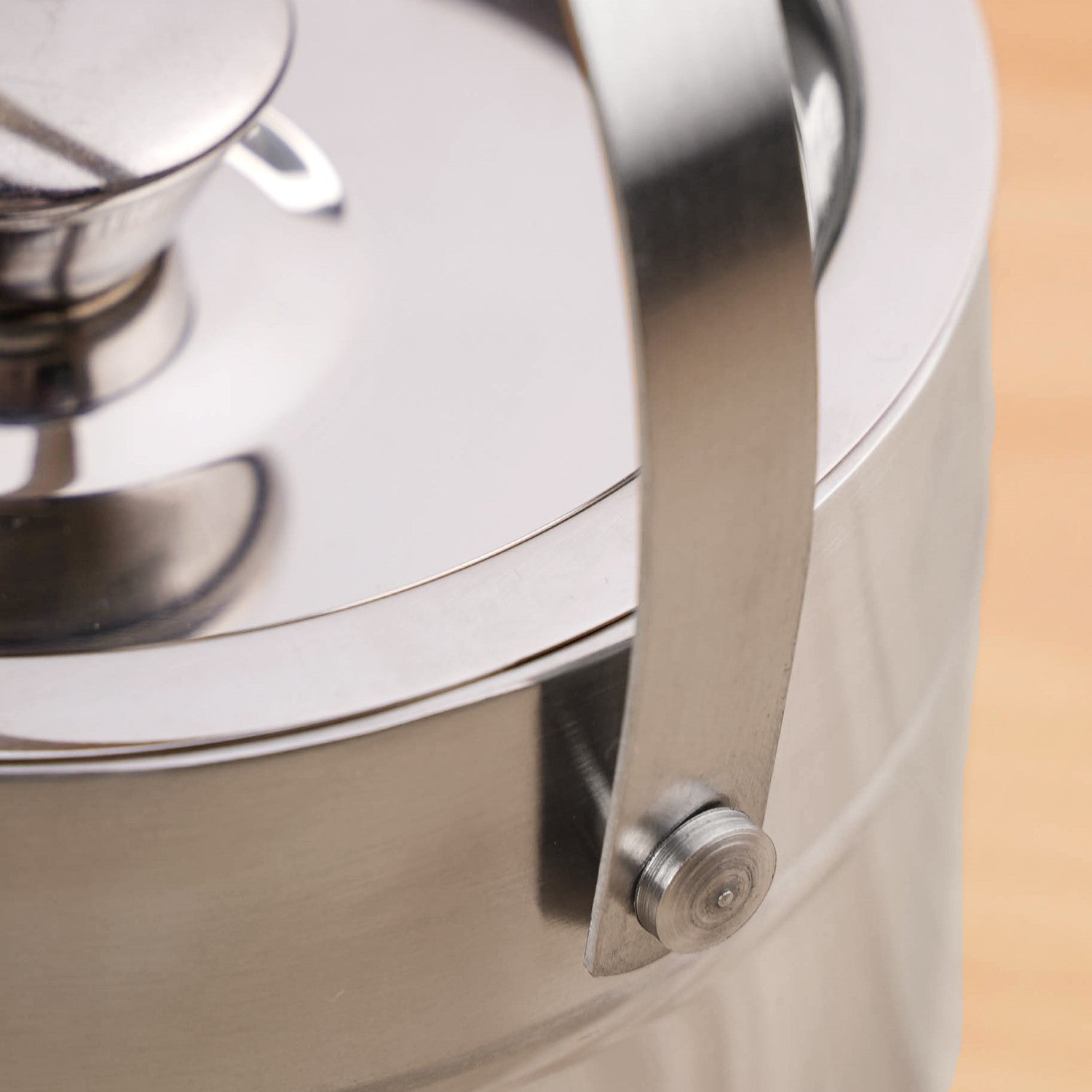 Design: The ice bucket showcases a premium, minimalist aesthetic with its polished stainless steel finish and sturdy, thick-walled construction. Its lid is equipped with an easy-to-grip knob, allowing for quick access to ice, while the bucket handle ensures effortless portability. The sleek, ergonomic tongs come with sharply defined jaws, making it easy to grip ice cubes securely.