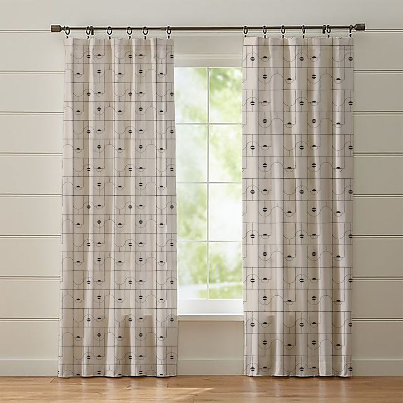 The beautiful beige curtains are versatile, and can enhance the ambiance of both home and office settings. The abstract stitchwork coupled with the slub-textured surface and graceful draping make them perfect for adding a sophisticated look to a variety of interiors.