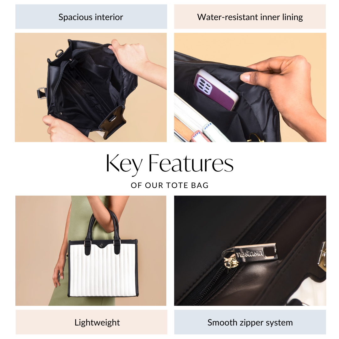 The tote bag has been designed to be water-resistant. This means that while it is not completely waterproof, it does protect your belongings from light rain and spills that may occur daily. For heavy rain, we suggest using additional protection such as umbrellas or rain cover designed for bags.