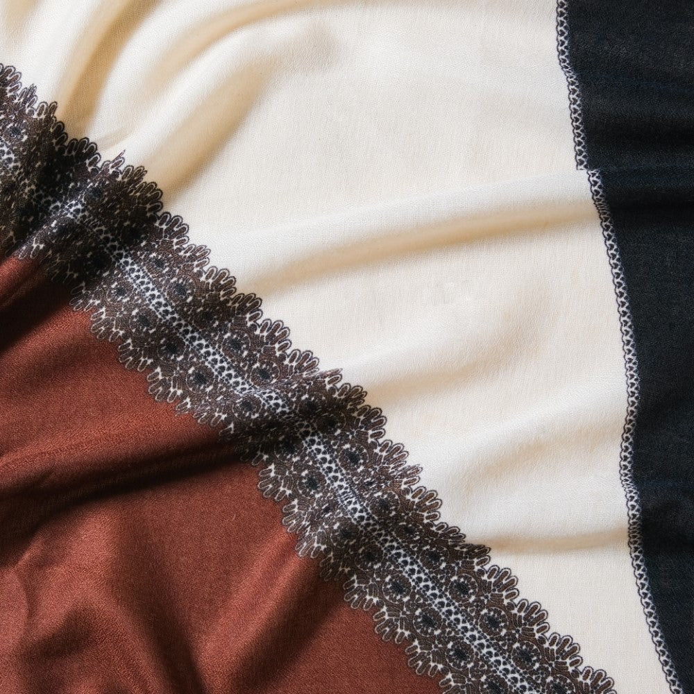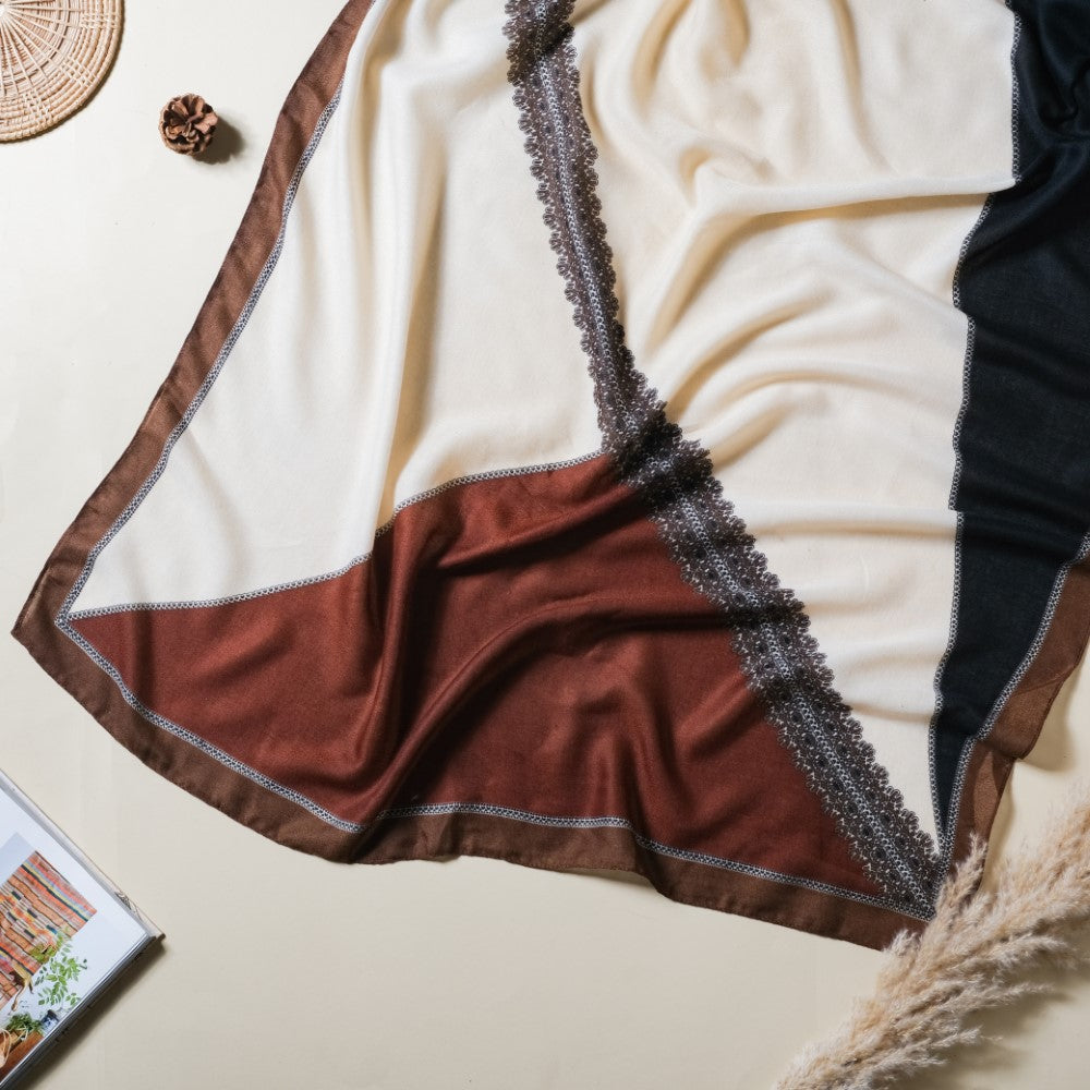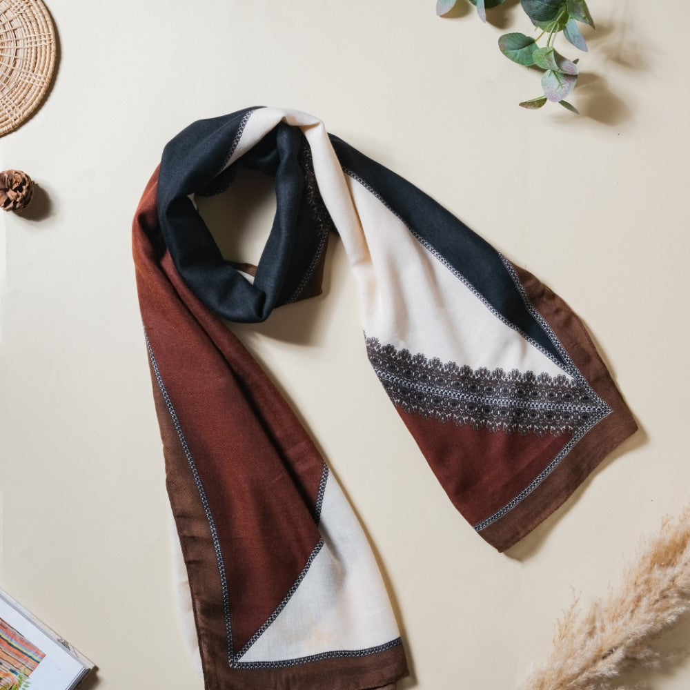 The polyester blanket scarf features an intricate border design accompanied by a highly chic and sophisticated colour combination of black, brown, and white. The unique colour contrast of the winter scarf makes it an iconic winter wear item that can be paired with both formal and informal outfits. The polyester fabric also ensures that the ladies' scarf has a smooth and soft texture that's long-lasting. Wear the blanket scarf with any dark or light-coloured clothes to create a fashionable ensemble attire.