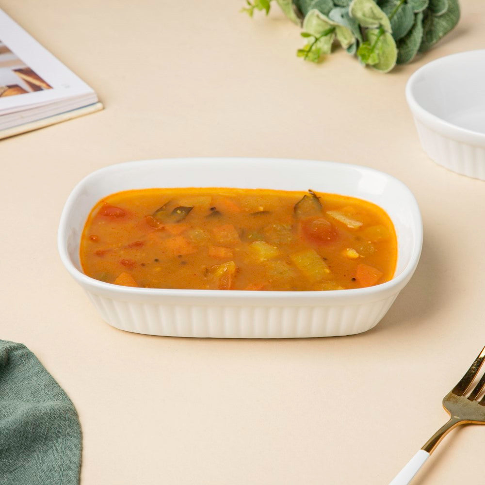 Classic Rectangle Ribbed Ceramic Baking Dish White 300 ml