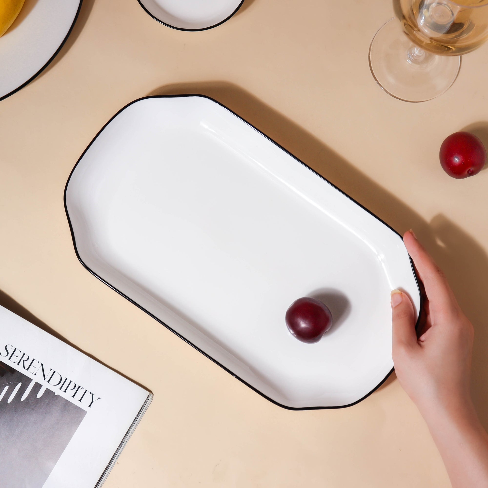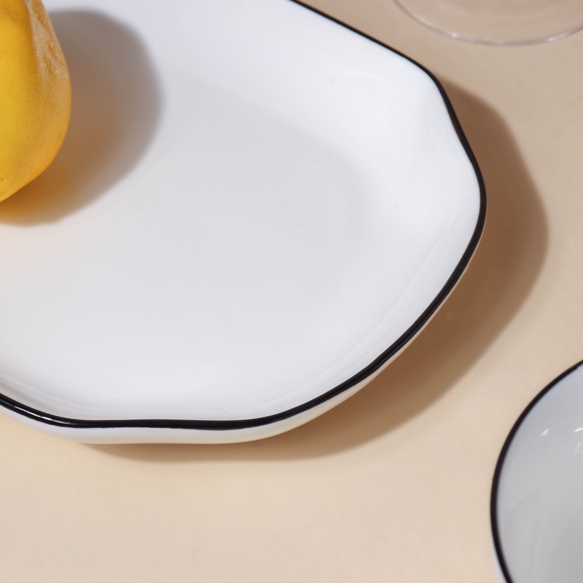 The monochrome dinner set is an ideal gift hamper for anniversary, housewarming, wedding, Christmas, Diwali, or on the birthday of an individual who is fond of crockery.