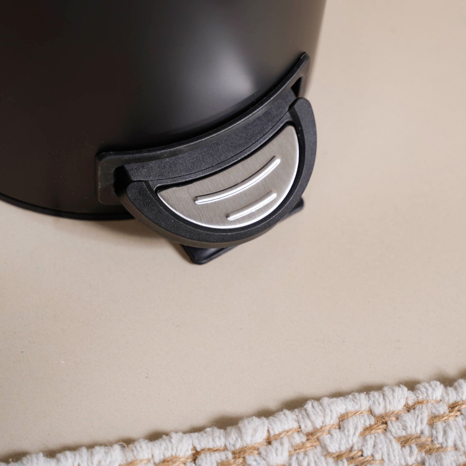 Design: With its sleek black matte finish and clean cylindrical silhouette, this dustbin complements minimalist, Scandinavian, and contemporary settings alike. The sturdy foot pedal, enhanced with a metallic grip panel, allows for easy, hands-free use. A snug-fitting lid ensures added functionality, along with a flat base. Designed for convenience, it also includes a detachable inner bucket with a stainless steel handle for easy use.