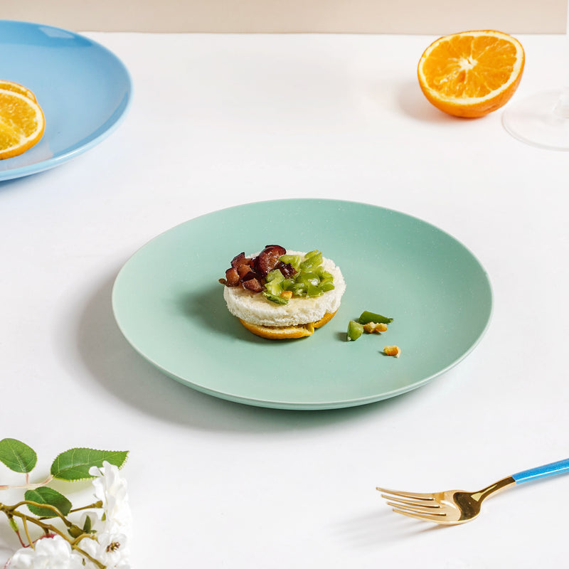 The 8-inch ceramic plate's distinct matte hue gives the dining table a whimsical touch while still keeping it classy and chic. Any dinner table can be turned tranquil by the solid-colored mint green snack plate. The circular ceramic dish can be used as a side plate to serve bread or sweets before the main course. Nestip: The matte mint green plate can be paired with blue-colored crockery. Size: 21cm D x 2cm H Color: Mint green Material: Ceramic Products included: 1 plate Style: LLC108